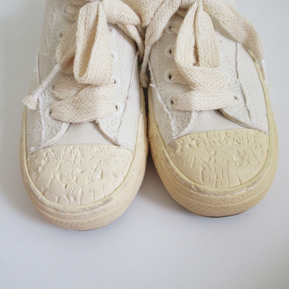 【「土に還るスニーカー」をコンセプトに、ソールからアッパー、ミシン糸までスニーカーを構成する全てのパーツに生分解性の素材を使用したスニーカーコレクション。【General Scale Edit.01】パストソール 6ホール ローカットスニーカーアイテム名のPASTには、「過ぎ去った時間の美しさを再現することにより時を蘇らせる。」という意味が込められ、すり減ったソールや経年劣化で朽ちたゴム 、履き古した風合いが忠実に再現されたスニーカーです。】 | |