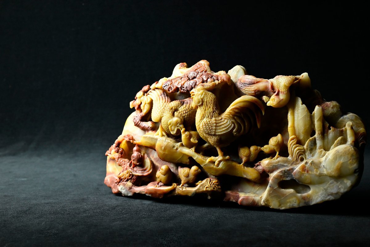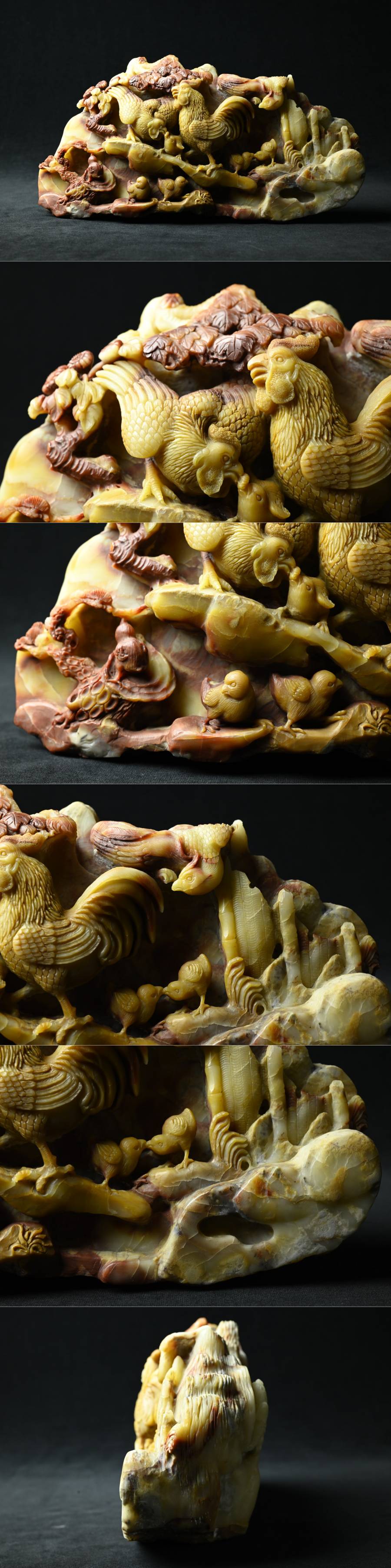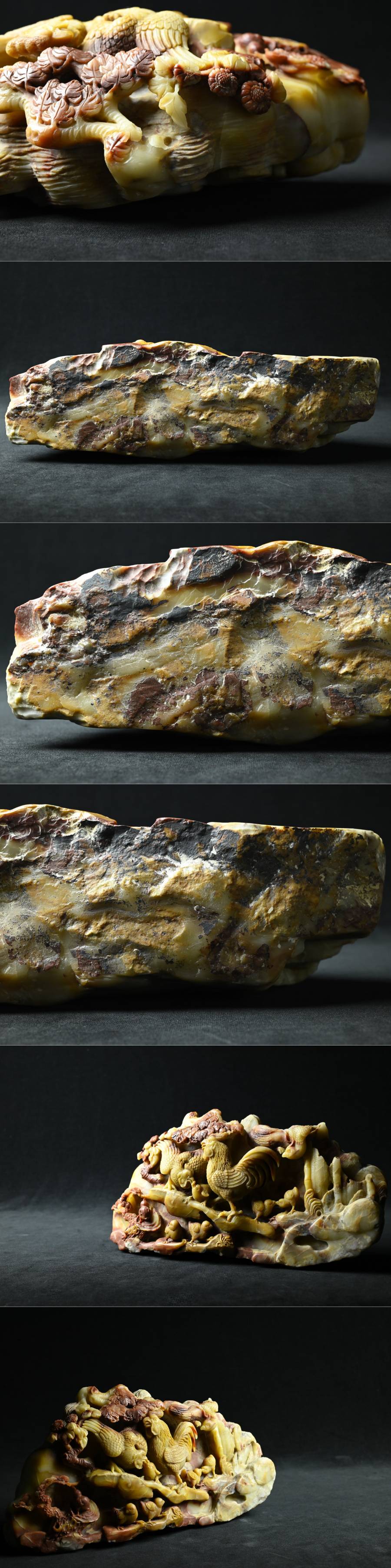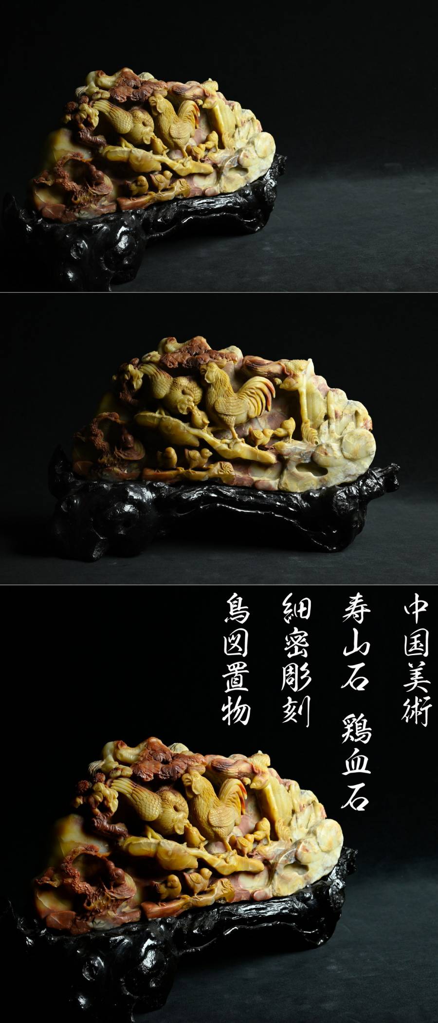 【昊】中国美術 寿山石 鶏血石 細密彫刻 鳥図置物 30.3cm 唐物骨董[AF21Ys]