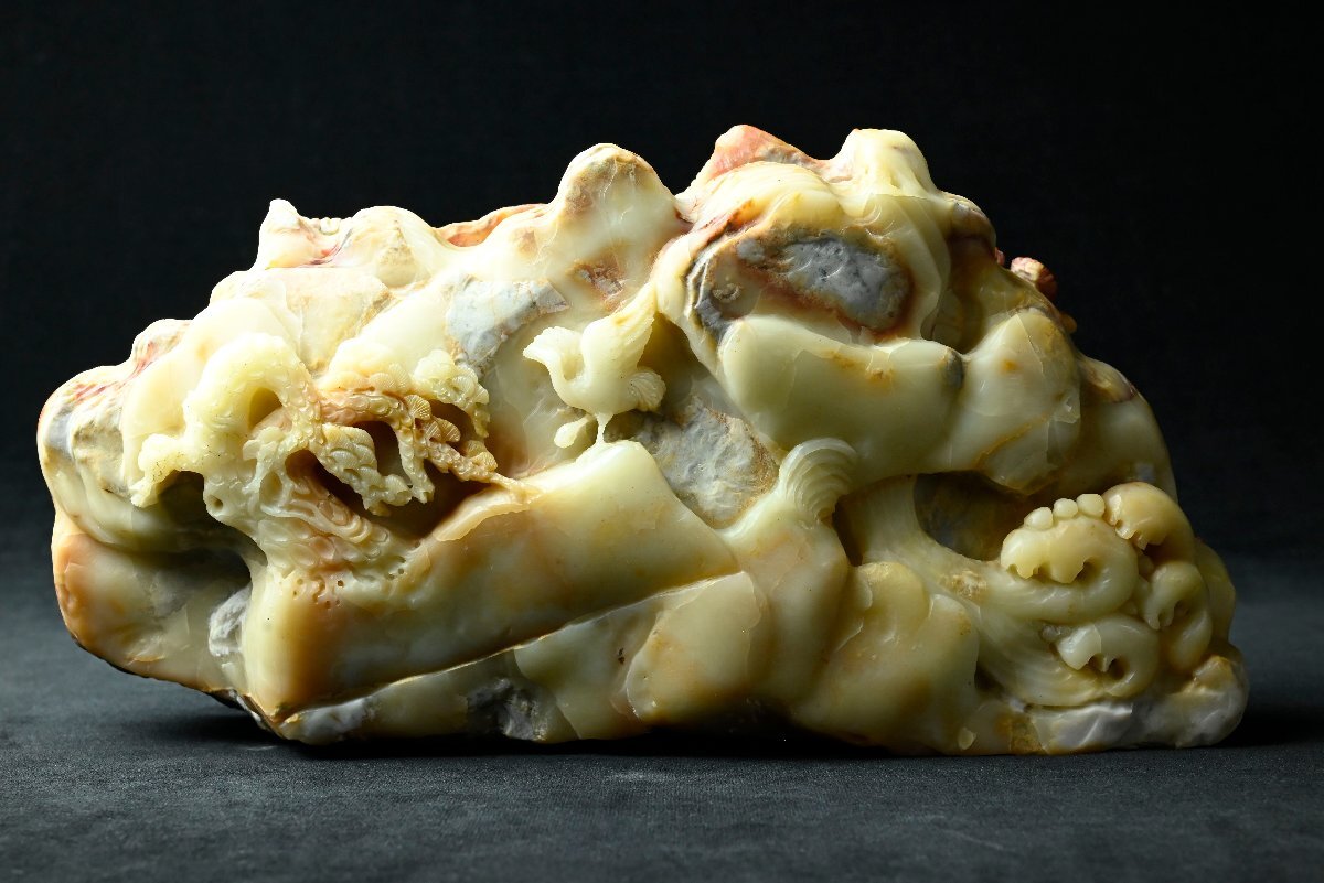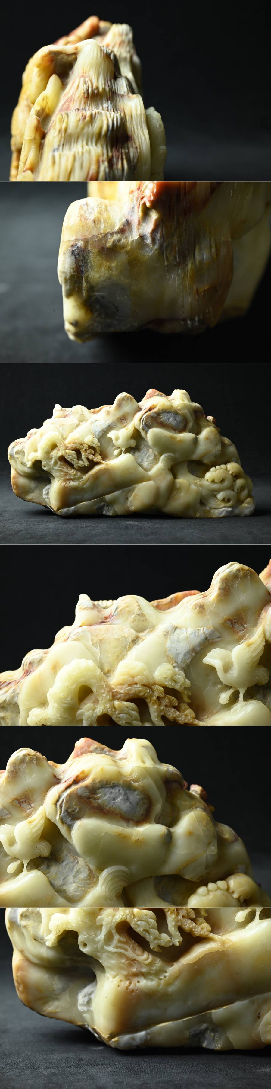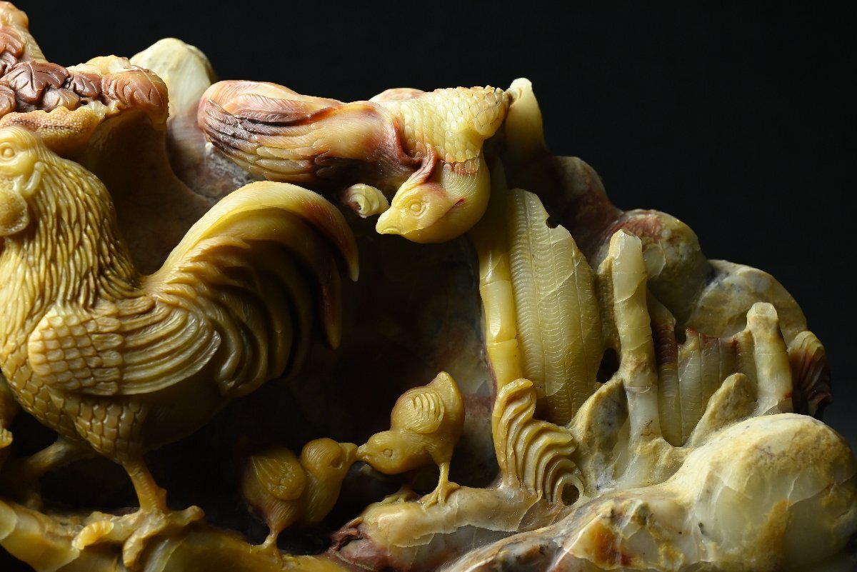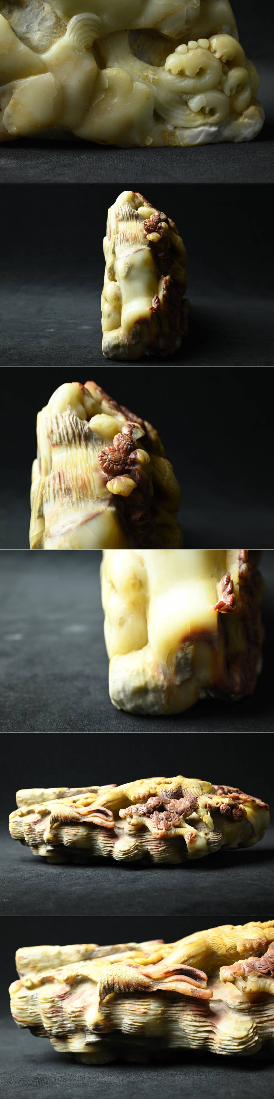 【昊】中国美術 寿山石 鶏血石 細密彫刻 鳥図置物 30.3cm 唐物骨董[AF21Ys]