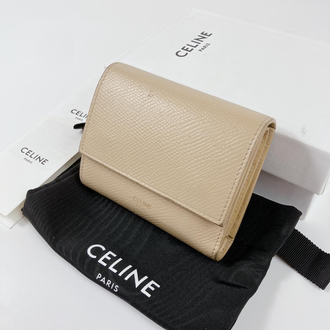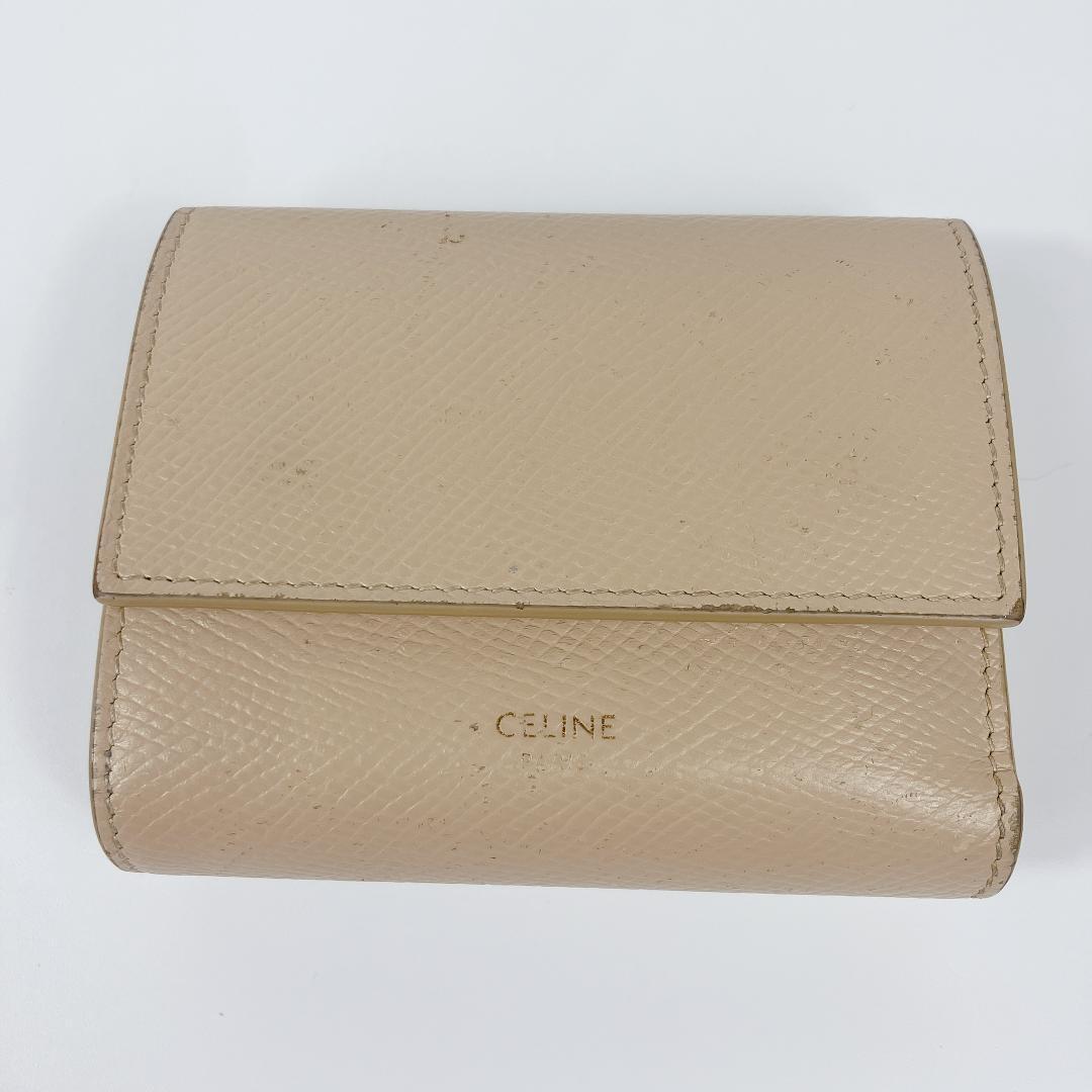 セリーヌ CELINE 三つ折り財布 スモールトリフォールド ベージュ系 レザー コンパクトウォレット