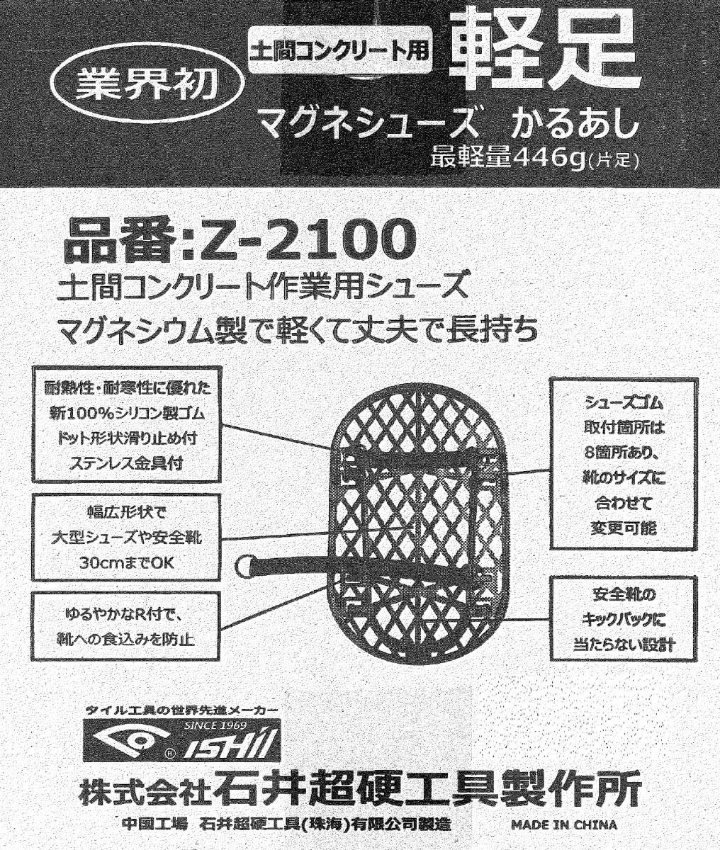 マグネシューズ マグネシウムスリッパ 石井超硬 軽足 Z-2100 生コン下駄 土間コンクリート作業 アルミスリッパより軽くて強い 丈夫