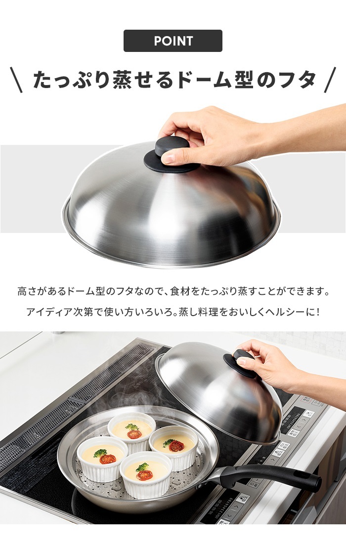 燕熟の技 スチームプレート フライパン用 24~26cm ステンレス製 日本製 簡単蒸し料理 調理器具 軽量 高品質 燕三条製 お手軽調理 蒸し器 蒸し物 蒸し鍋 せいろ 蒸し籠 蒸し調理グッズ ドーム型蒸しプレート スチーマー フタ付き ステンレス お鍋に乗せる フライパンに乗せる 蒸し料理 蒸し調理 蒸し野菜 ヘルシー 便利 |