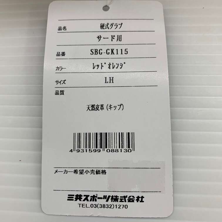 ※値引き、値下げ交渉は一切対応不可です。ご了承下さい。※当店では型付け等の加工は行っておりません。【商品情報】 ■メーカー:シュアプレイ ■型番:SBG-GK115 ■バーコード: ■重さ(約):539g ●一般硬式用グラブ ●内野手用 ●右投げ用 ●付属品無し ■サイズ(人差し指先端~手首まで約):29.5センチ ■備考:未使用タグ付きですが表面に細かい傷、色あせ、汚れがございます。 型は付いていません。 状態は画像にてご確認ください。