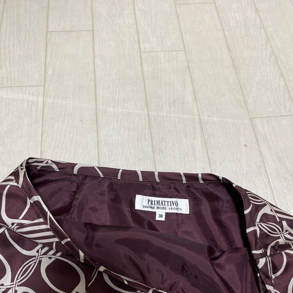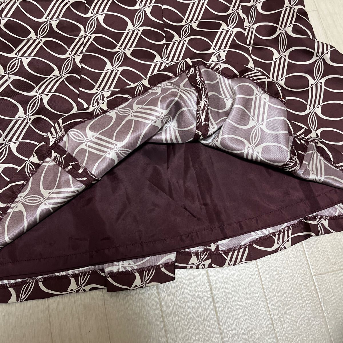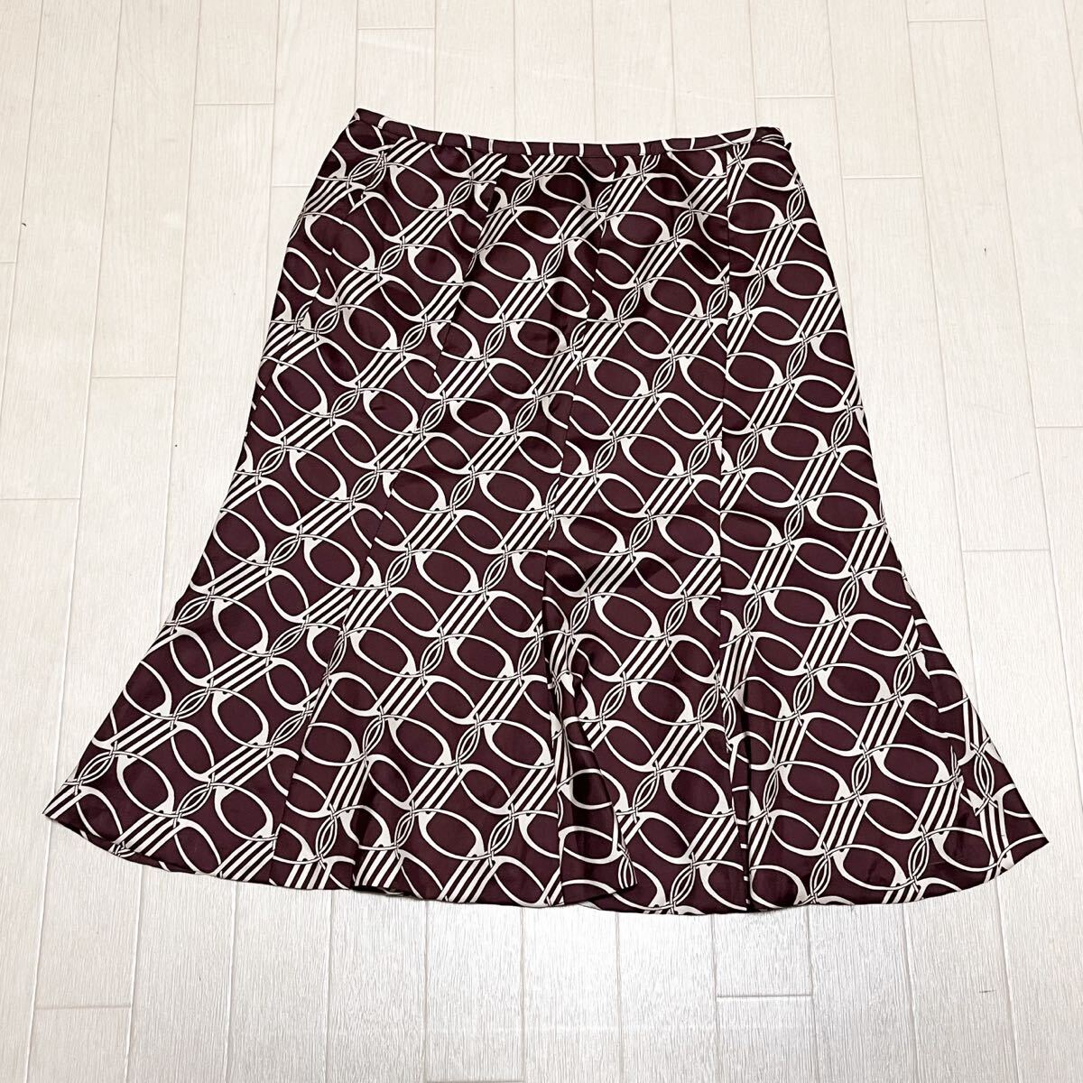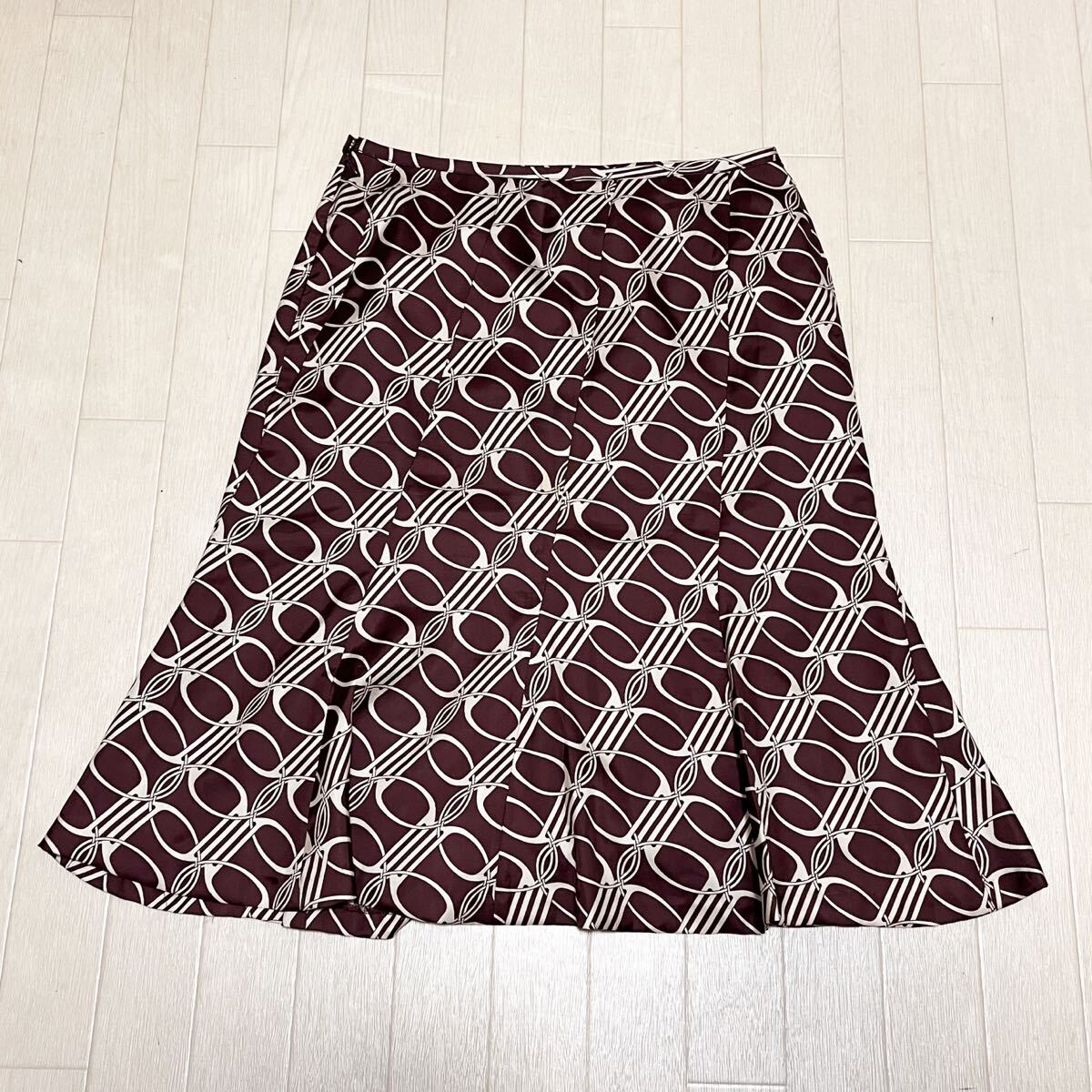 和762★ PRIMATIVO HANAE MORI ハナエモリ フレアスカート 総柄 膝丈ほど 38 ブラウンパープル レディース