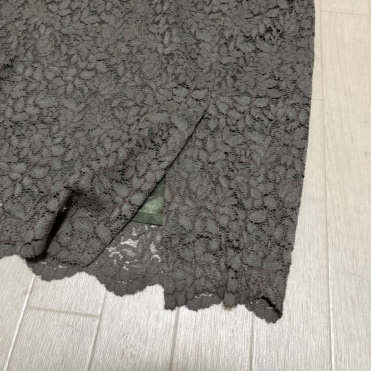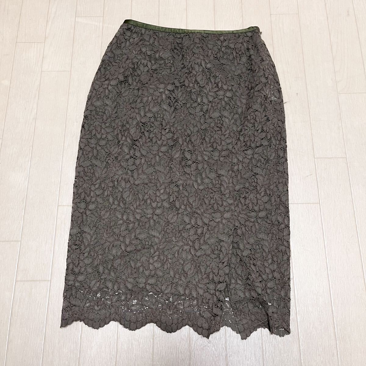 和762★ ROPE' mademoiselle ロペ タイトスカート レース ロングスカート 日本製 36 カーキ レディース 大人色 スリット