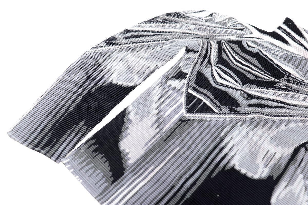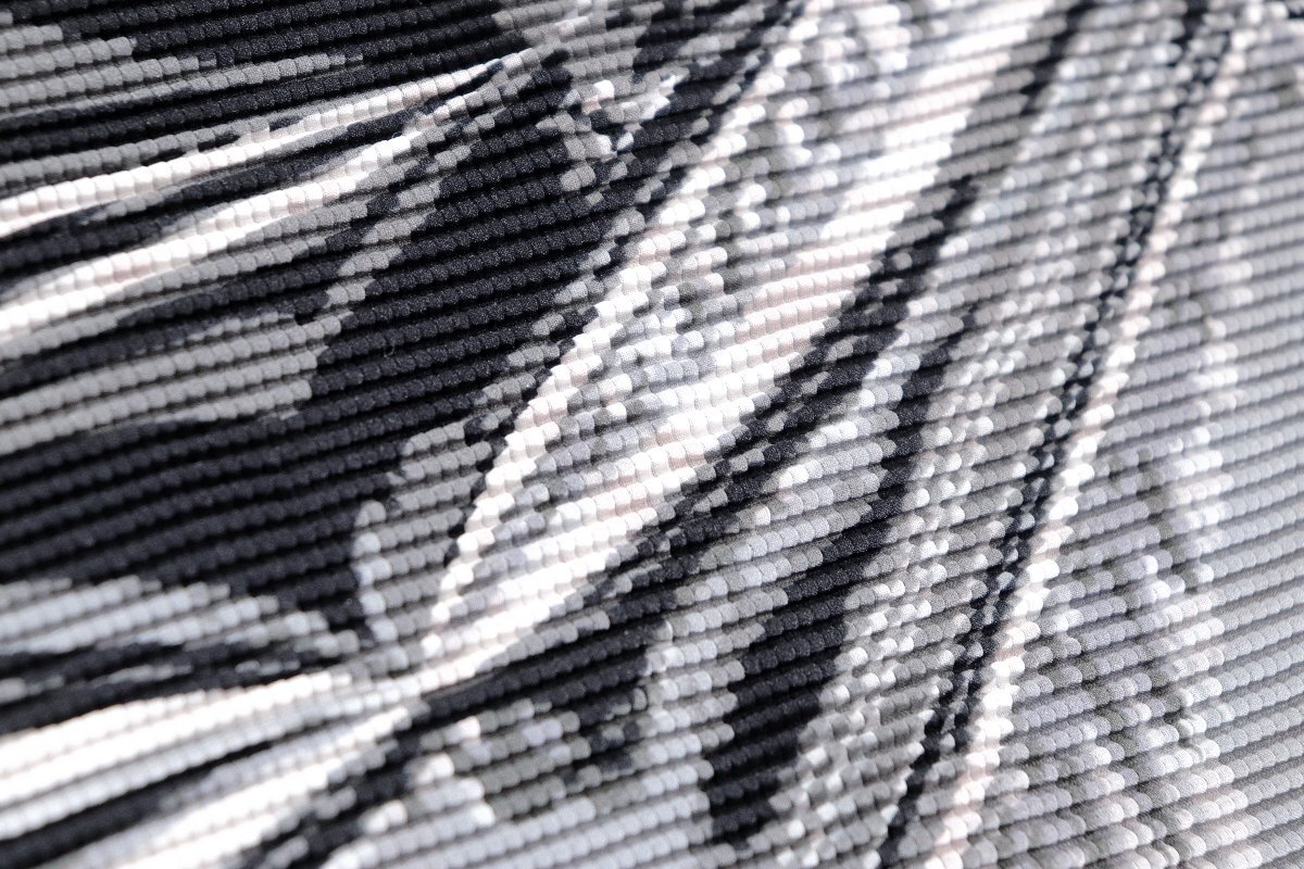 縦と横に細かいプリーツをほどこし、全方向に伸縮します。