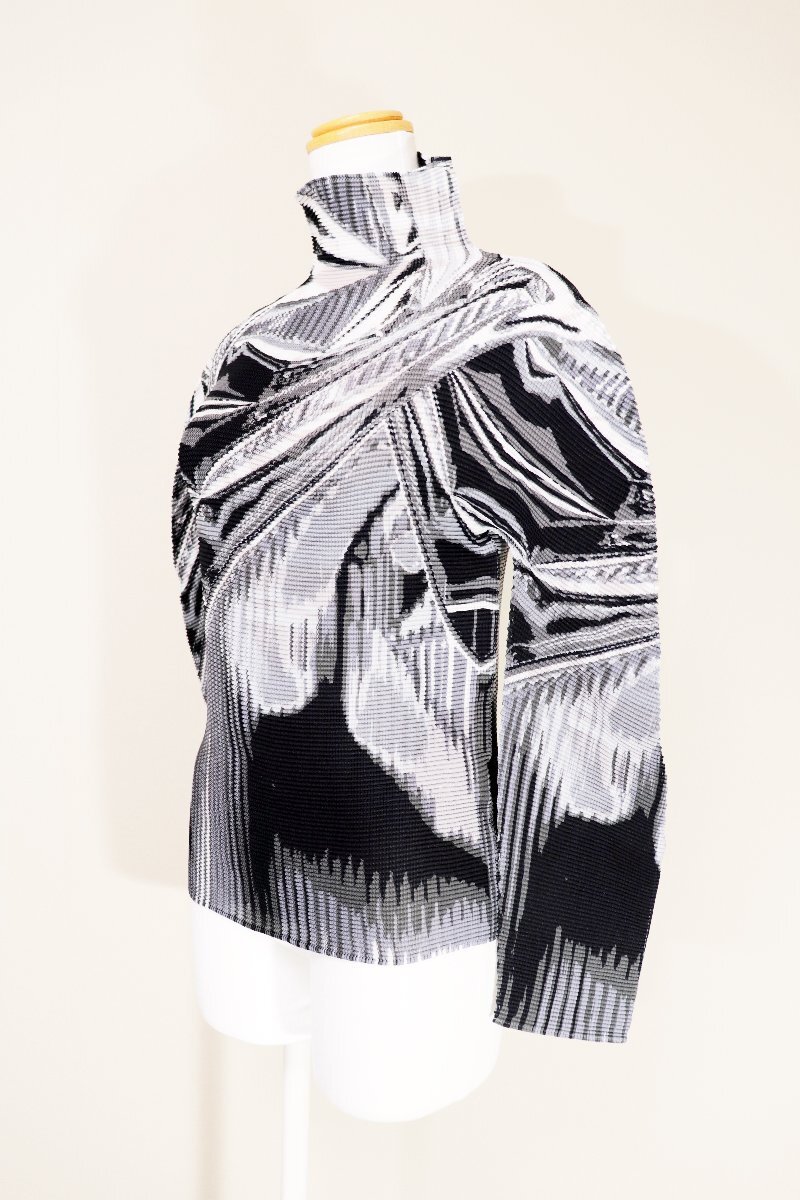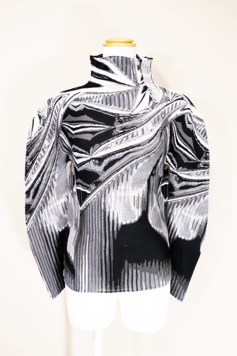 ☆美品2020☆ISSEY MIYAKE/meイッセイミヤケ/ハイネックプルオーバー:灰黒白xz382