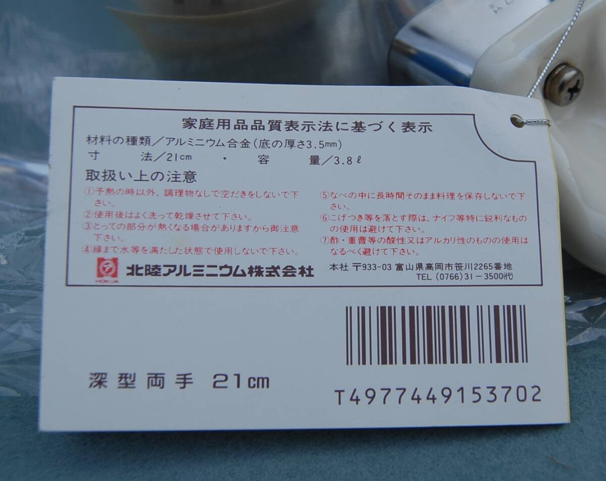 北陸アルミニウム 深型:両手鍋 21cm フレーバーリターン セラキャスト CERACAST HOKUA  未使用