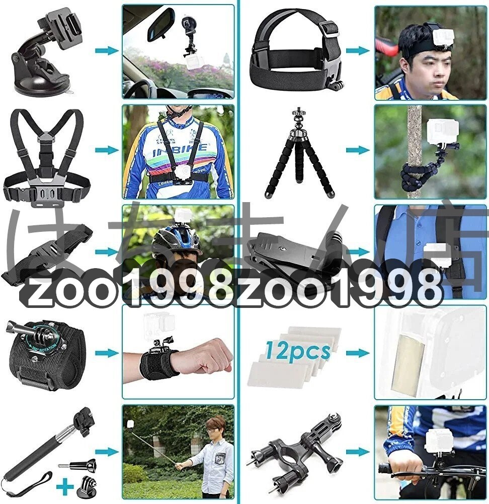状態:新品未使用 50 in 1 アクションカメラ アクセサリーキット GoPro Hero 11 10 9 8 7 6 5 4 GoPro Max GoPro Fusion Insta360 DJI Osmo Action Action 2 AKASOなどに対応 究極の互換性: GoPro Hero 11 10 9 8 GoPro Max GoPro Fusion およびその以前のモデルに対応できます。 DJI Osmo Action、Insta360 AKASO APEMAN Campark SJCAMなどにも対応できます。 【頭、胸、ヘルメット用のストラップ】すべての頭のサイズと体型に合わせて設計されたストラップは、サーフィン、スケートボーディング、パラシュート、バンジージャンプの息を呑むようなPOVショットを撮るために、カメラを頭と胸に固定します。 ヘルメットストラップは、ロードバイクレース、マウンテンバイクトレイル、BMX用のヘルメットにカメラをしっかりと固定します。 【リストストラップとフローティングハンドルグリップ】360°回転可能なマウントを備えたリストストラップは、さまざまな角度からショットを撮るために手首と腕にフィットするように簡単に適応できます。 フローティングハンドルグリップは、水泳やシュノーケリングの際にカメラを水中に浮かせたままにします。 【ハンドルバーマウントとサクションカップ】自転車やバイクのハンドルバーにカメラを取り付けます。ハンドルバーマウントは、直径0.75"-1.4"(1.9-3.6cm)のバーに適合し、180°の傾斜運動を可能にします。 吸盤マウントは車内の映像のためにカメラを車に取り付けます。 【柔軟な三脚と自撮り棒】脚が関節式のフレキシブル三脚は、枝や支柱を包み込み、凹凸のある場所でもカメラを安定させます。 軽量の自撮り棒は、外出先で自分撮りやビデオを簡単に撮ることができます。
