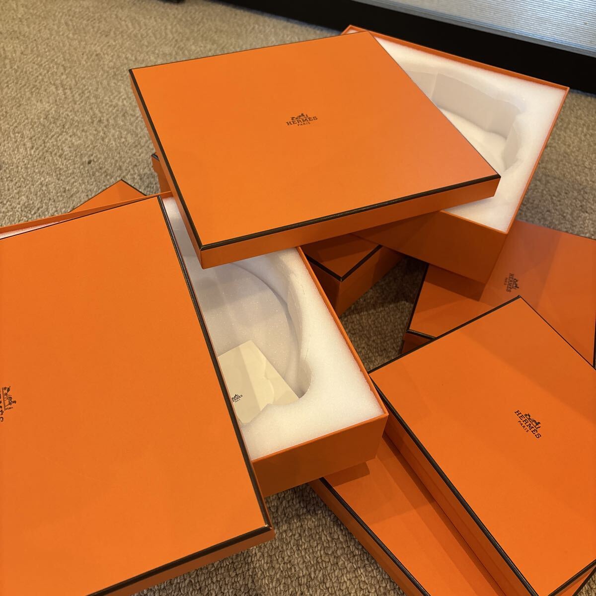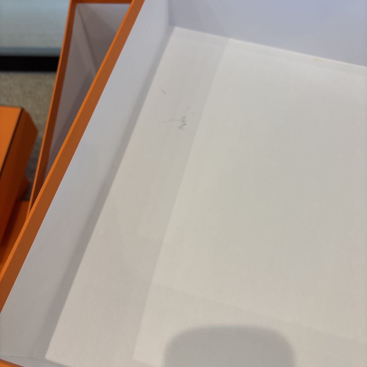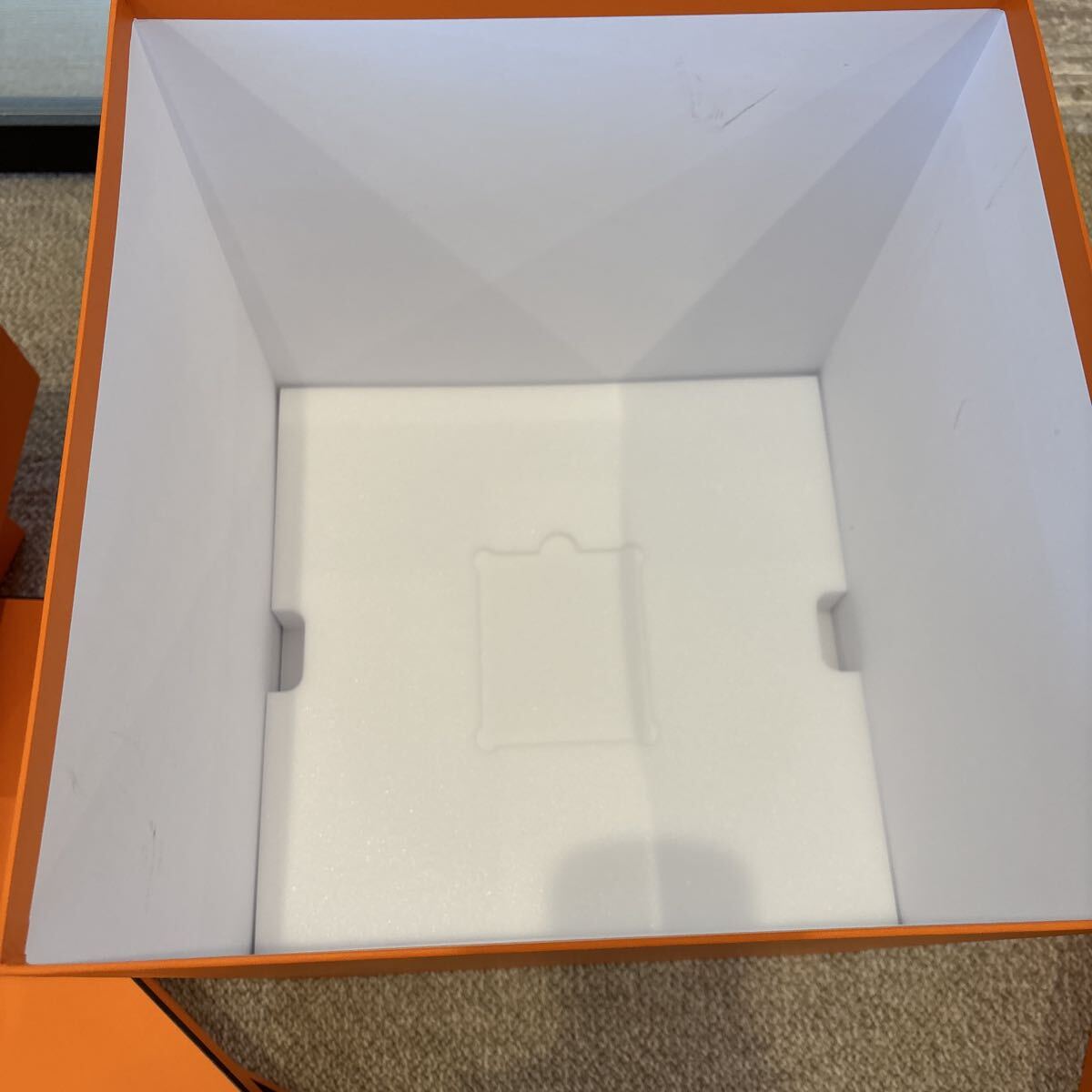 エルメスで購入したときについてきた保存の箱になります。商品は入っていず空箱です。その時に使用したので、多少小傷や汚れスレ等ありますが、個人的にはまずまず綺麗だと思います。中身は商品をとってそのままの状態のものもあります。写真参照ください。