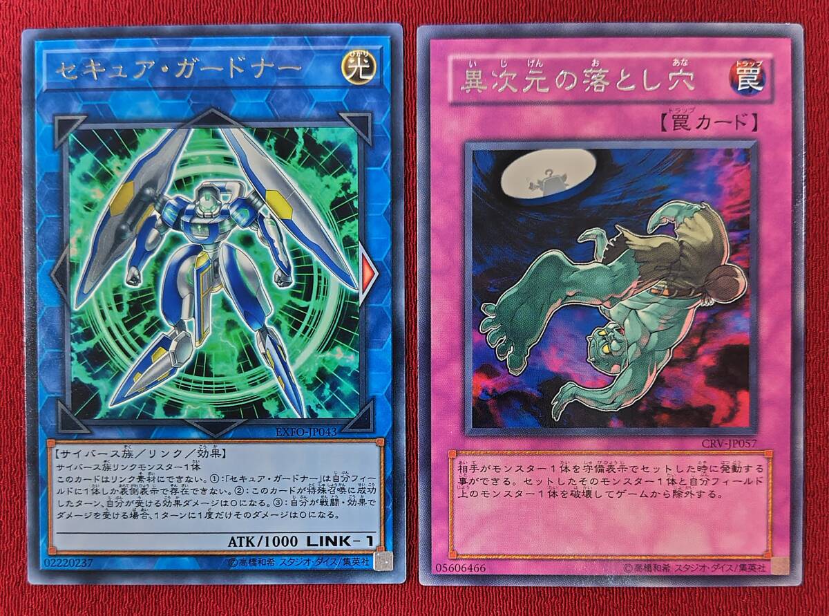 1000円スタート!! ★高レアリティ:字レア2枚セット = セキュア・ガードナー EXFO-JP043 + 異次元の落とし穴 CRV-JP057 ◆極美