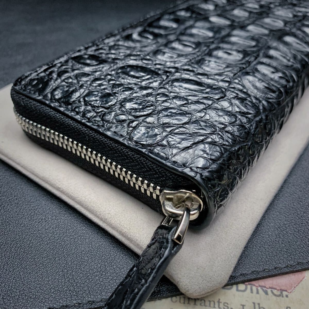 ・クロコダイルと呼ばれている品種のワニ革は人気が高く、独特の模様と凹凸が魅力で、高級ブランド品を中心にクロコダイルが多く使われています。今回はワニ革の代表格である『シャムクロコダイル』のセンターカット背中革のラウンドファスナー財布を出品します。