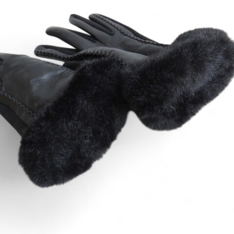手袋 5本指 グローブ レザー調 ファー タッチパネル対応 黒系 ブラック レディース