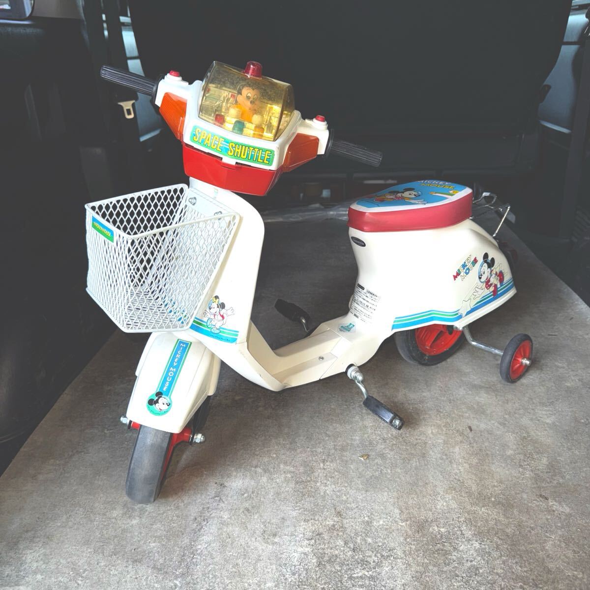 昭和レトロ/動作確認済み ディズニー正規品 バイク型乗用三輪車 子供用/ビンテージの通電確認済み商品でございます