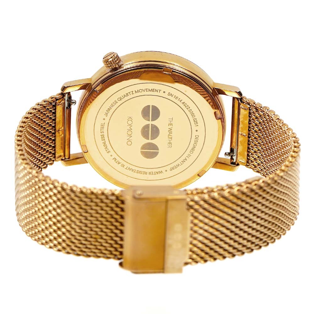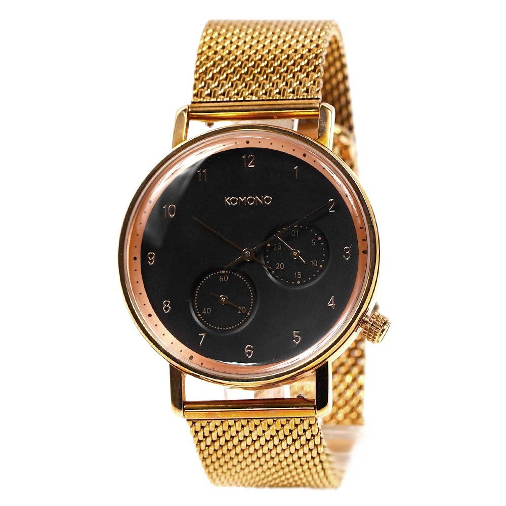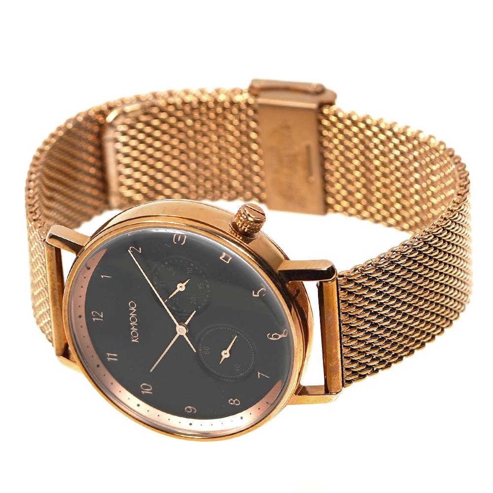 ■商品名 コモノ KOMONO KOM-W4022 ワルサー メンズ 腕時計■サイズ ケースサイズ:H約40mm x W約40mm x D約11mm ベルト幅:約20mm 腕周り:約15~22cm■素材 ケース素材:ステンレススチール / ベルト素材:ステンレススチール■カラー 文字盤カラー:ブラック / ケースカラー:ローズゴールド / ベルトカラー:ローズゴールド■ムーブメント クォーツ■防水性 日常生活防水■保証期間 1年間(時計の機械以外のパーツなど、修理が出来かねる場合がございます)■付属品 専用BOX / 保証書 (予告なく仕様が変わることがございます)■特徴 日付表示 / スモールセコンド / フリップロック付スライド式 / ベルト交換に便利なアジャスター式(バネ棒部分)ベルト■備考 ※お客様のモニターを通してご覧になって頂いている為、実物を蛍光灯や自然光の下でご覧になった場合と色味が異なる場合がありますので、ご理解の上ご購入頂きますようお願い致します。※付属品は仕様変更等により、若干異なることがございます。【171211KOMONO】土日祝日は休業日です。※『2025/8/13(水)~2025/8/18(月)』につきましては夏期休業期間とさせて頂きます。ご迷惑をお掛けいたしますが、何卒ご理解くださいますようお願い申し上げます。