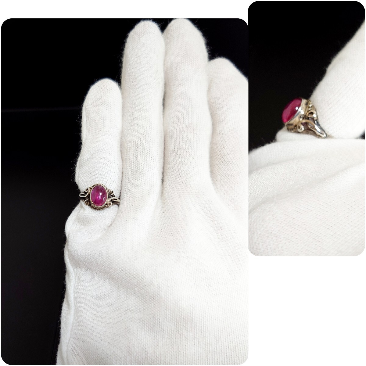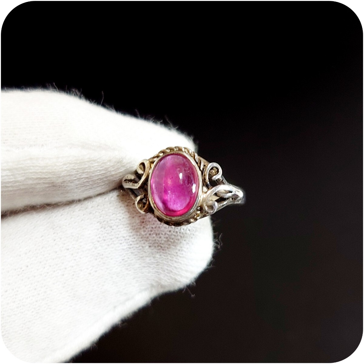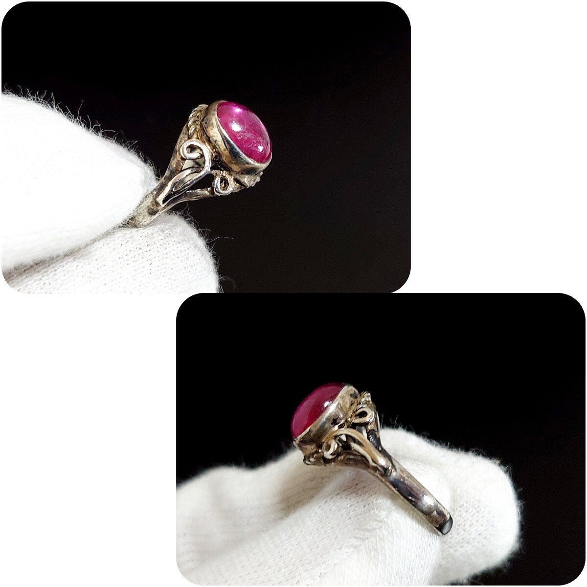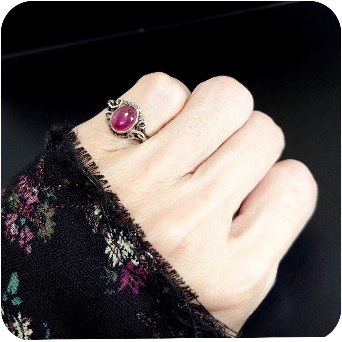天然ルビーとアラベスクの彫刻がとても可愛らしいリング☆