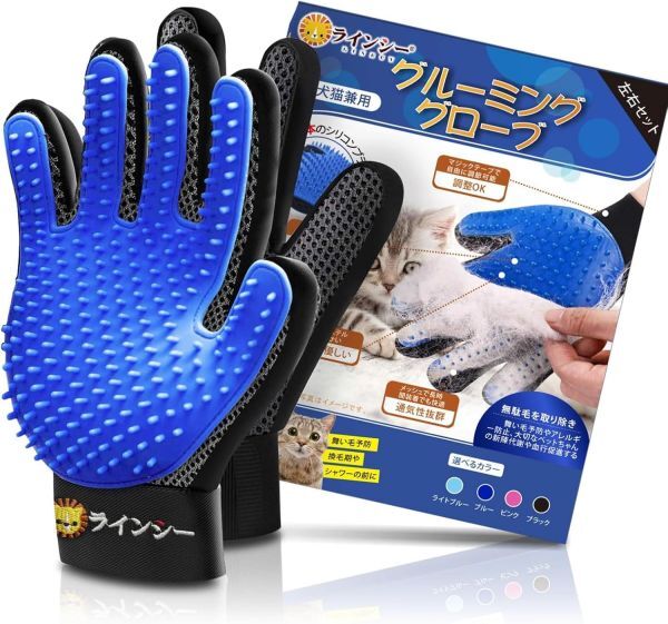 [LINECY] ペット ブラシ 手袋 グローブ 【259本ブラシ&左右1ペア】グルーミング ブラッシング  (ブルー) 新品未使用品になります。