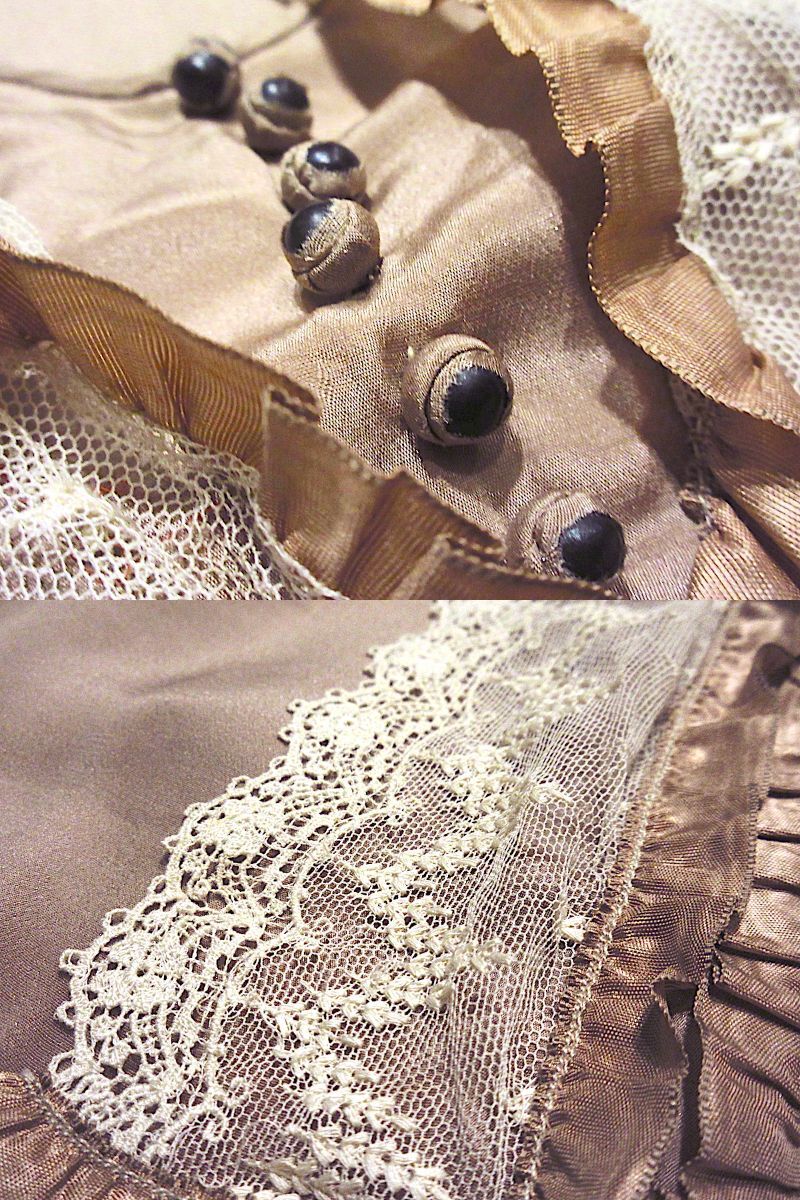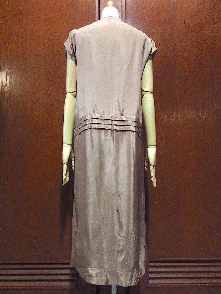 ~1920s レース刺繍付き シルク ノースリーブワンピース 茶