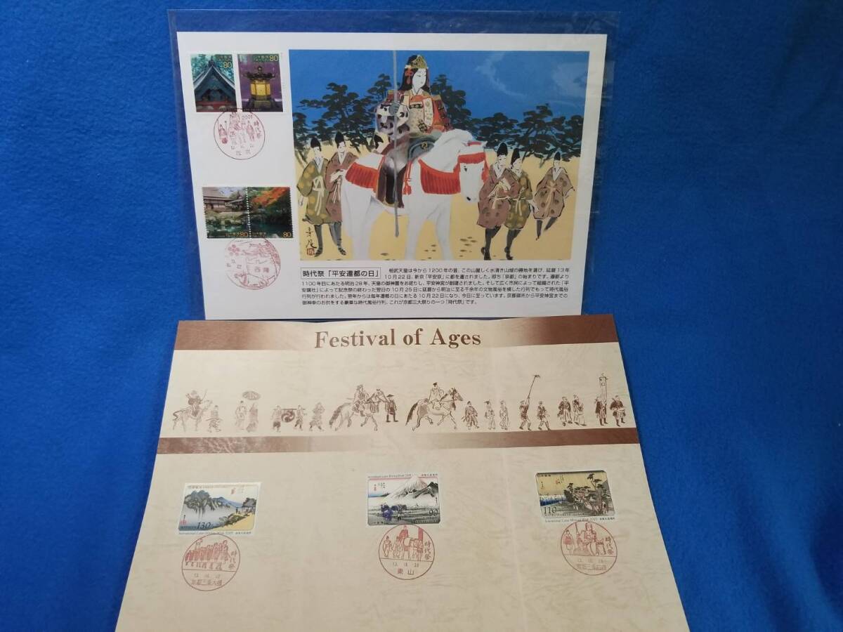 京都 祇園祭、時代祭、葵祭、大文字、京都まつり 風景印 台紙あり