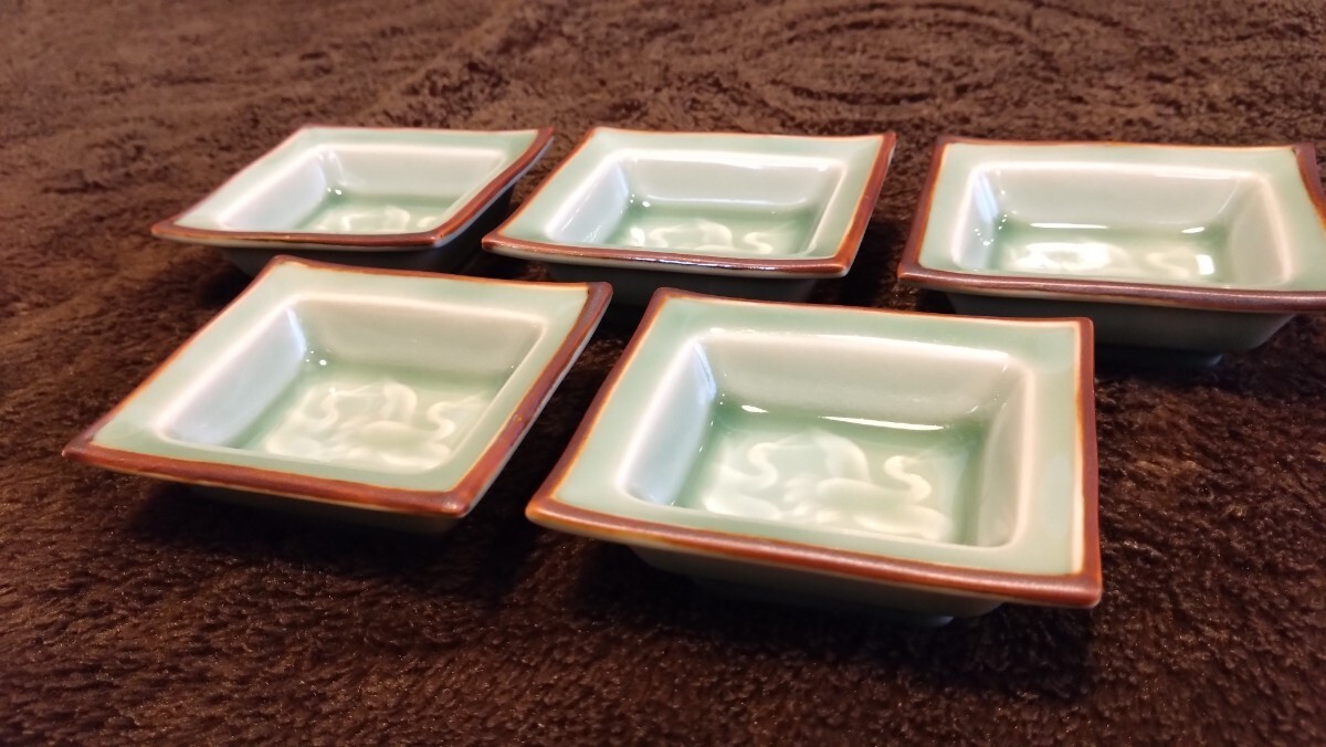 青磁 李朝 李朝青磁 角皿 豆皿 蔵出し 5客になります。