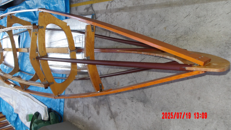 袋状の布(船体布)に組み立て式の木製骨組み(フレーム)を入れるタイプで