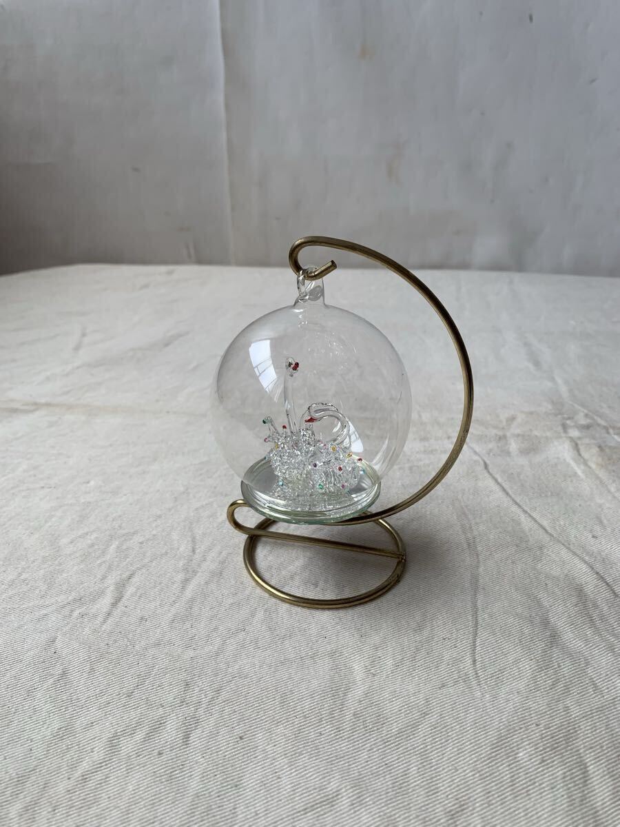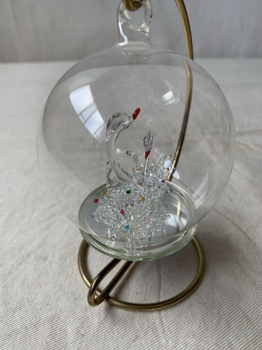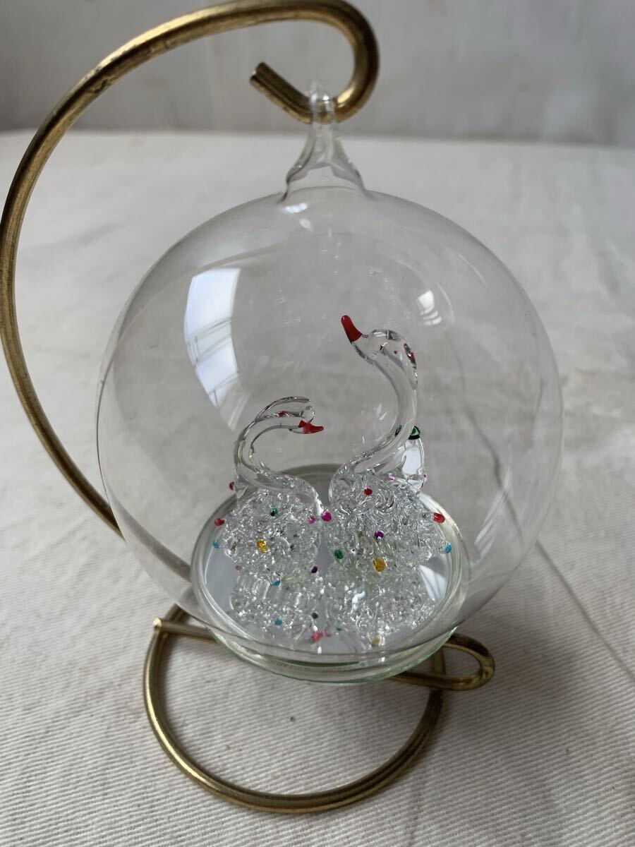 ガラスドームに入った親子白鳥のガラス細工の吊しの置物です。コレクションやオブジェにいかがでしょう。