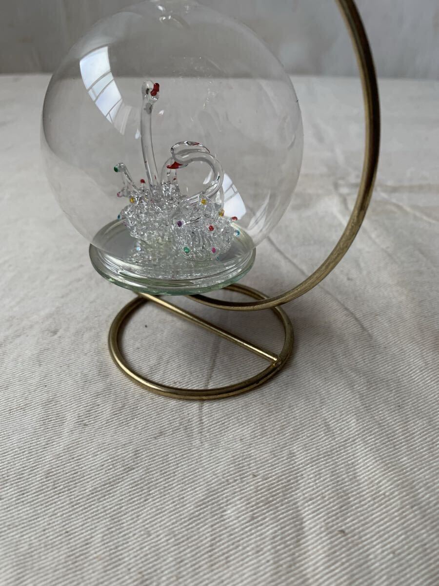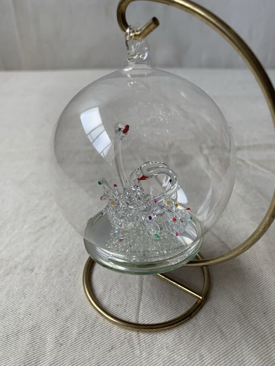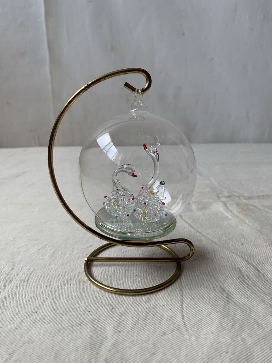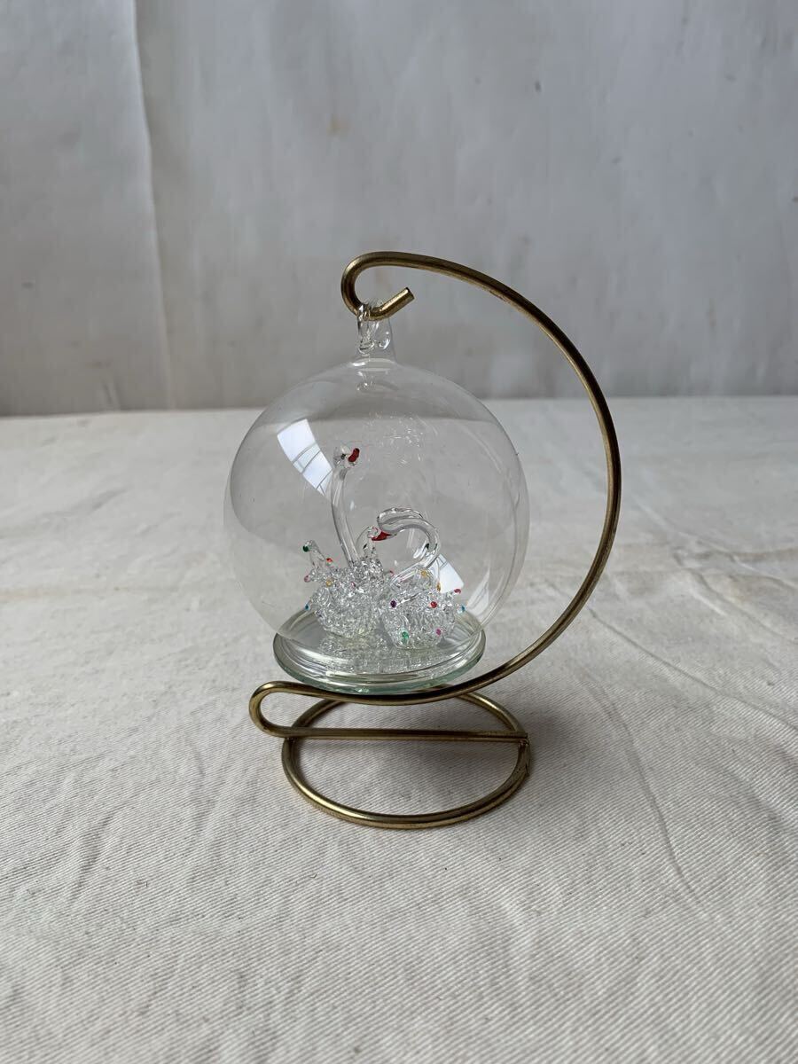 ガラスドームに入った親子白鳥のガラス細工の吊しの置物です。コレクションやオブジェにいかがでしょう。