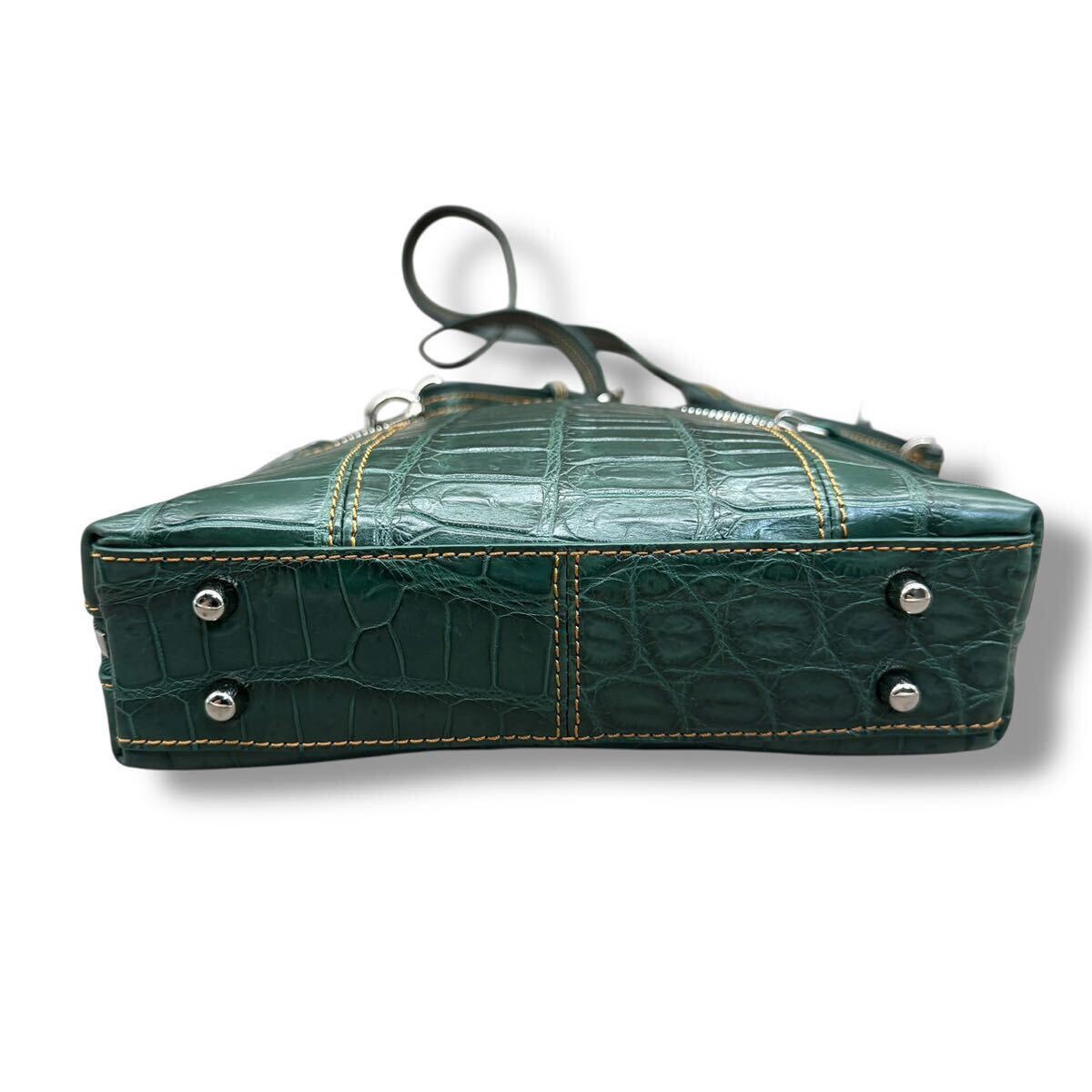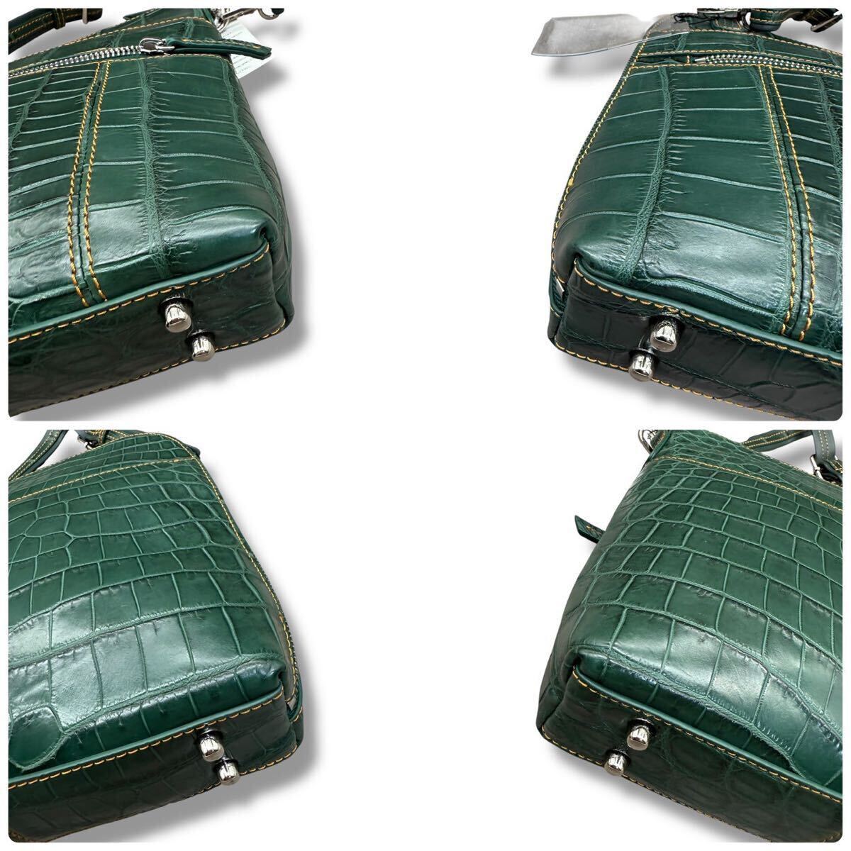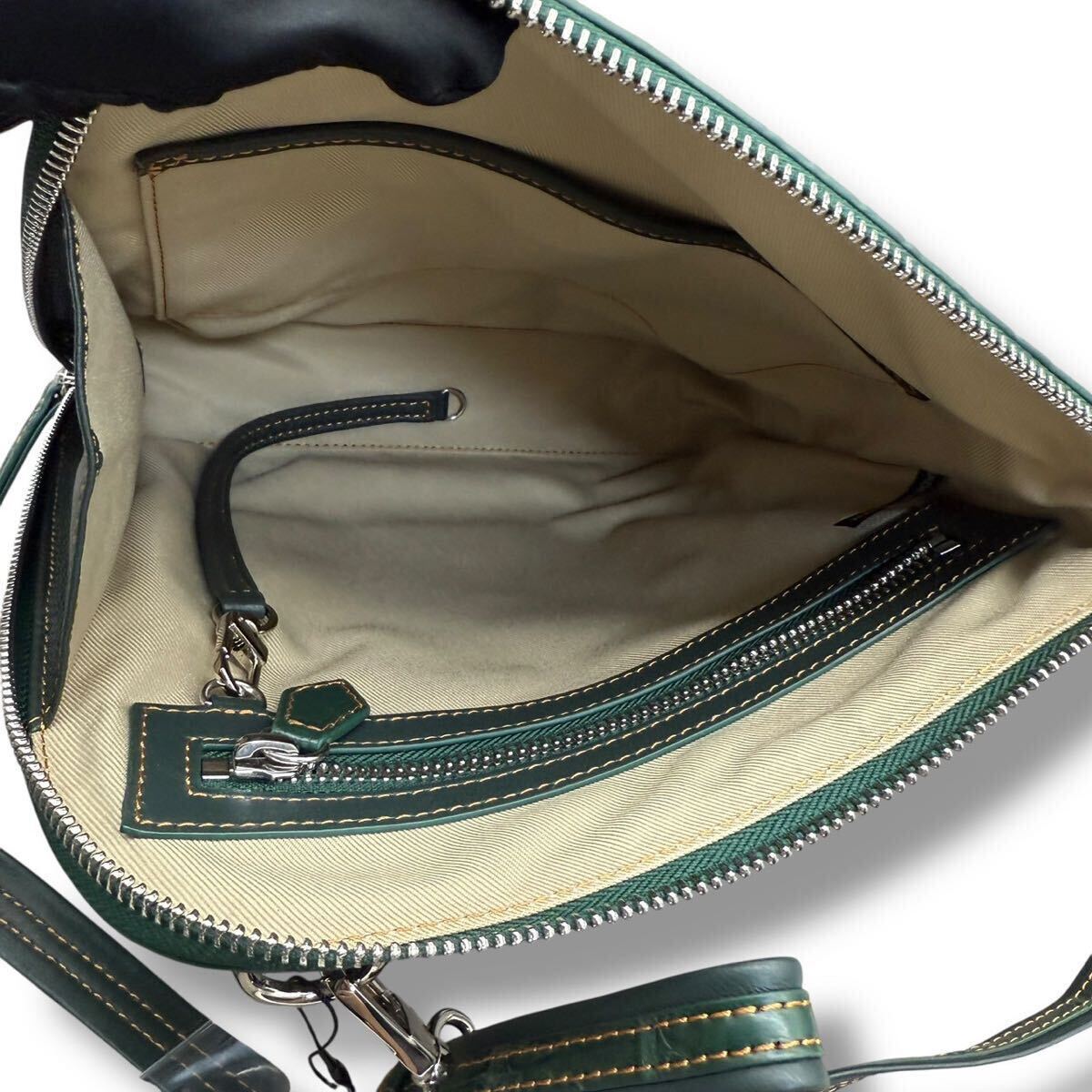 572 希少色!未使用!!クロコダイル ショルダーバッグ メンズ マットクロコ グリーン 緑 斜め掛け サコッシュ クロスボディ 鰐革 鞄