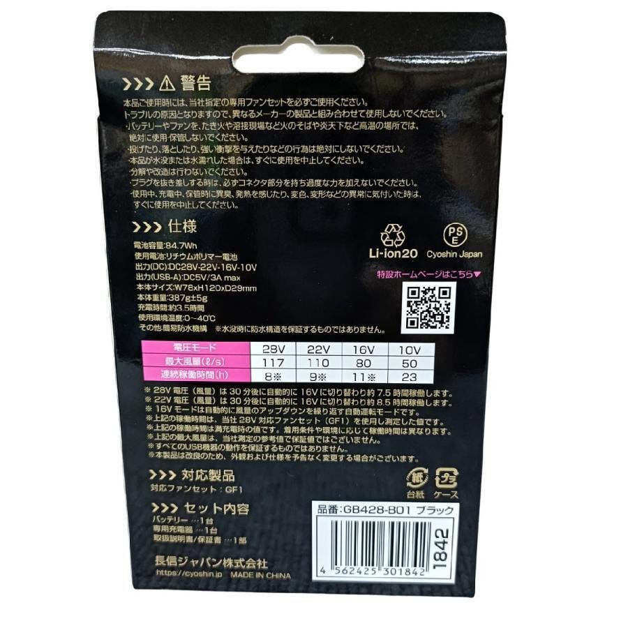 長信 28V ファン・バッテリー『GB428』『GF1』