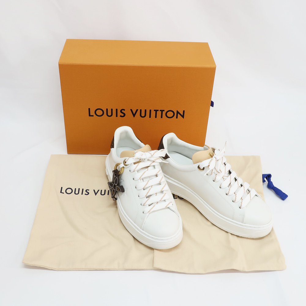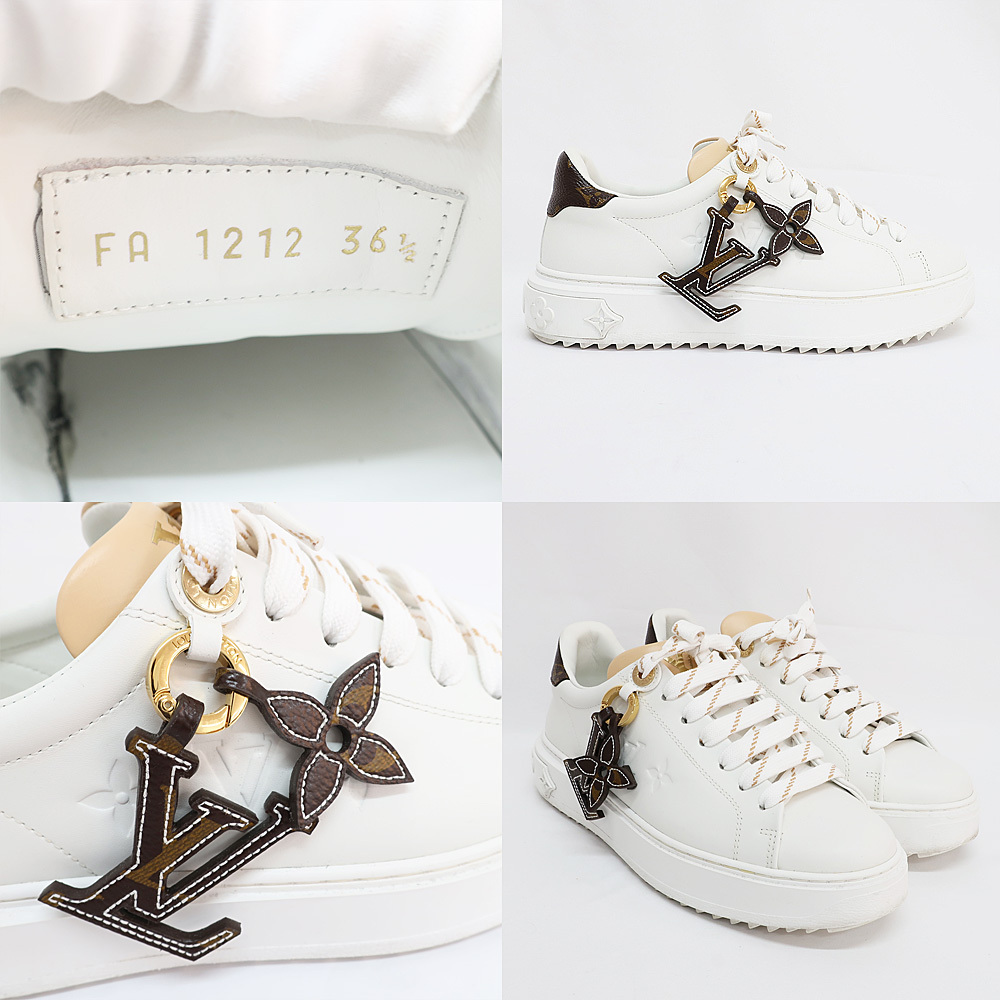 【天白】ルイヴィトン スニーカー タイムアウトライン ホワイト モノグラム チャーム サイズ36.5 23.5cm相当 靴