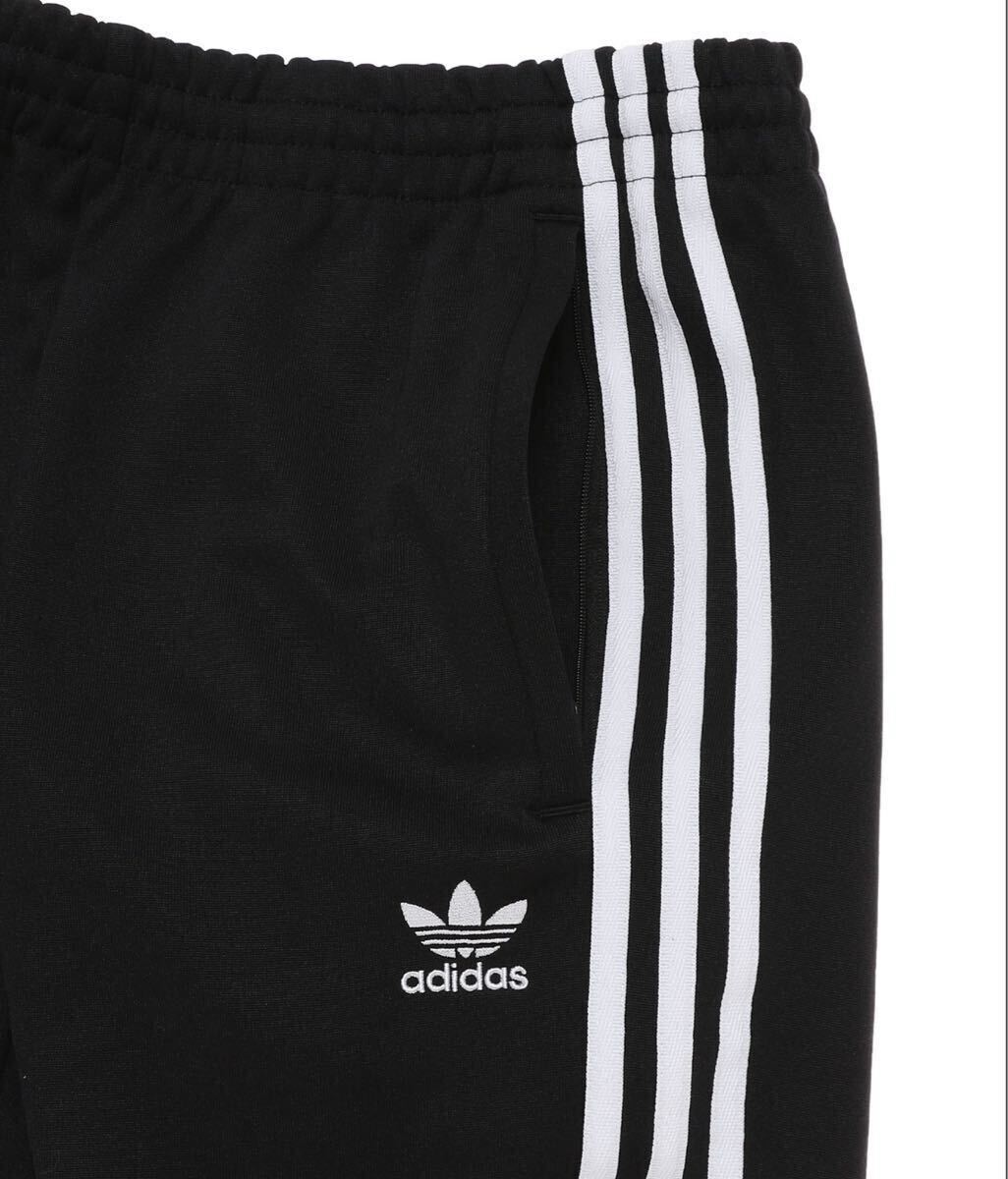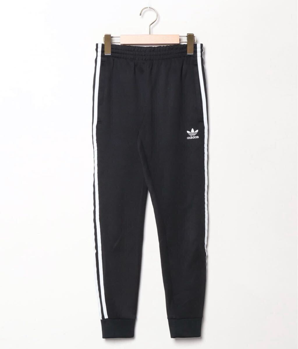 *美しいシルエット、足元をすっきりとみせる裾リブ、さらに、ポリエステル&コットンをブレンドしたビンテージライクなジャージBODY、そして、スーパースターのアイコンであるお馴染みのトレフォイルロゴ刺繍&3ストライプス