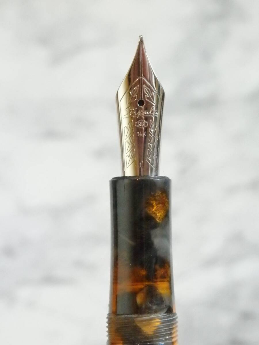 ◆【未使用・新品】【送料410円~】スティピュラ イ・カストーニ タイガーアイ コンビ万年筆 ペン先:大型14K585ソリッドゴールド F