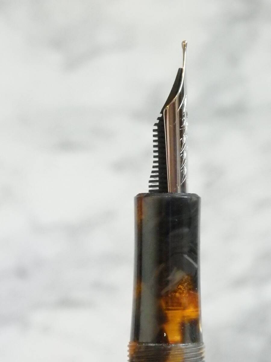 ペン先は、大型14K585ソリッドゴールドのFニブです。