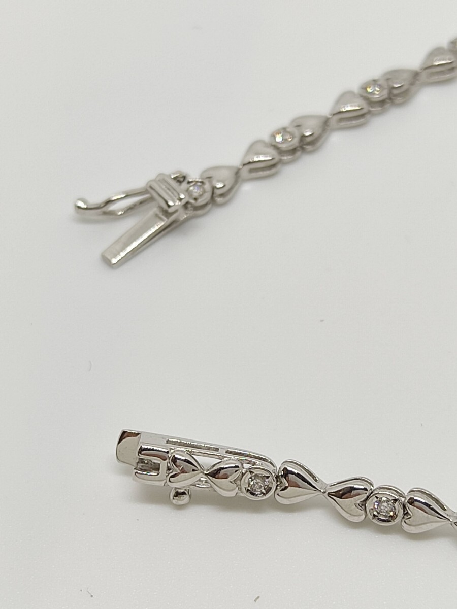 よく見ると、ダイヤとダイヤの間にはハートが2つ並んだデザインになっていて、オシャレなブレスレットに仕上がっています。