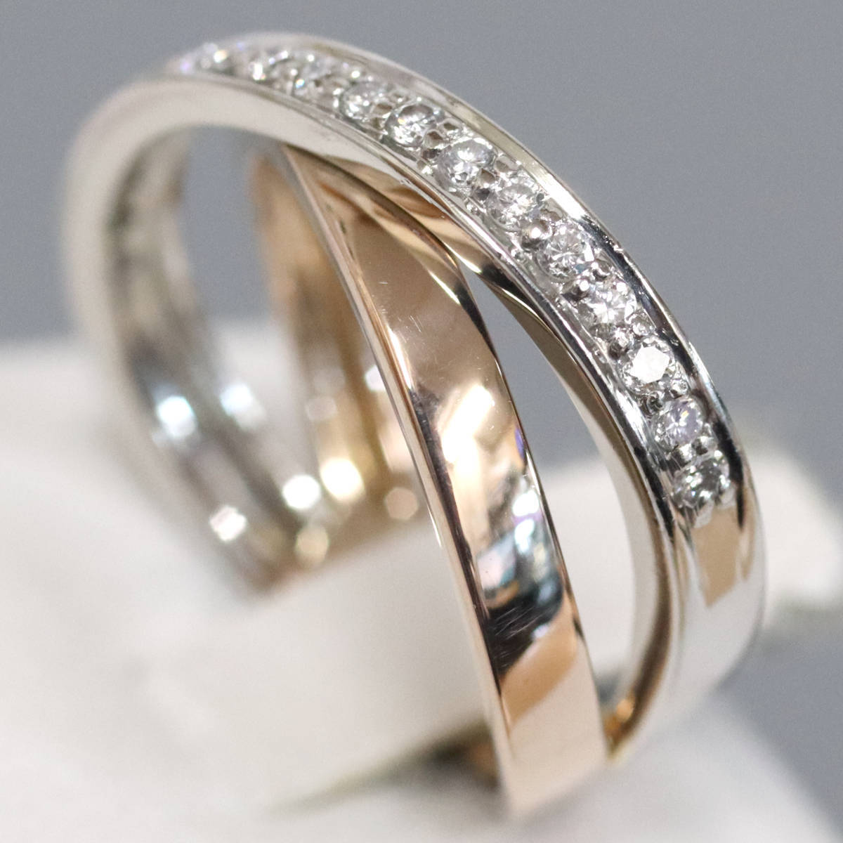 ヴァンドームのPt900/K18PGダイヤモンドリングの中古品です。 ダイヤモンドは全体的にインクルージョンが少なく、無色に近い色味です。 一部表面が欠けているものがあります。 地金には小傷があります。