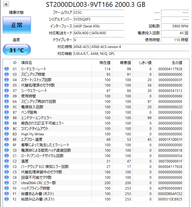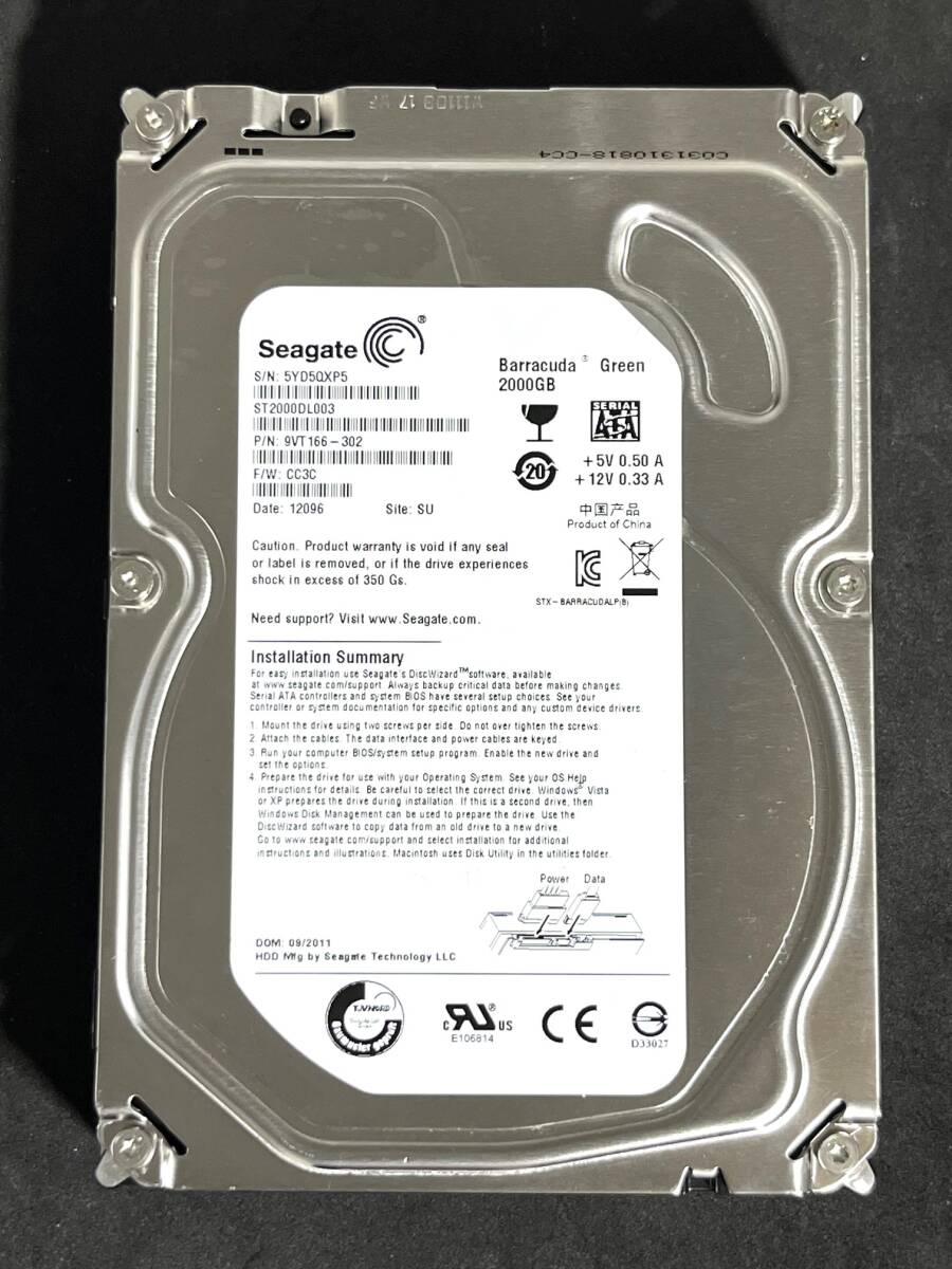 ★ 2TB ★ ST2000DL003 / Seagate F/W:CC3C 【使用時間:110h】稼働少 3.5インチ 内蔵HDD SATA Barracuda Green 2000GB [管理57QX]