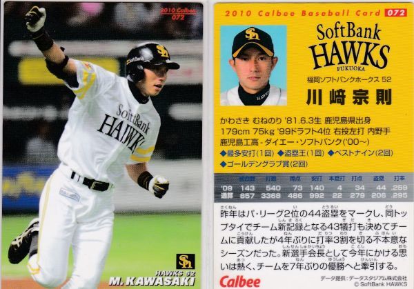 ●2010カルビー 【川﨑 宗則】 BASEBALL CARD No.072:Hawks R