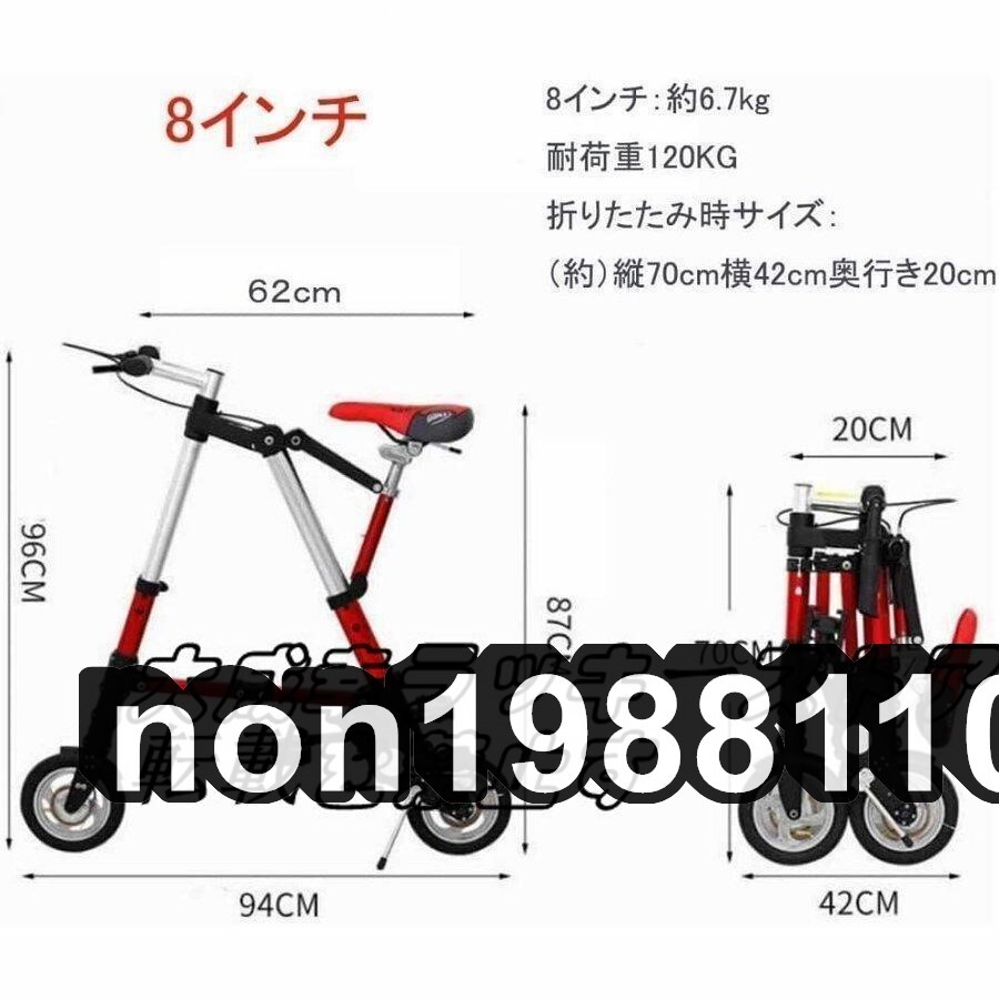 折り畳み自転車 8インチ 全4色 収納バック 工具付き 6.7kg 軽量 折り畳み式自転車 おりたたみ 小型