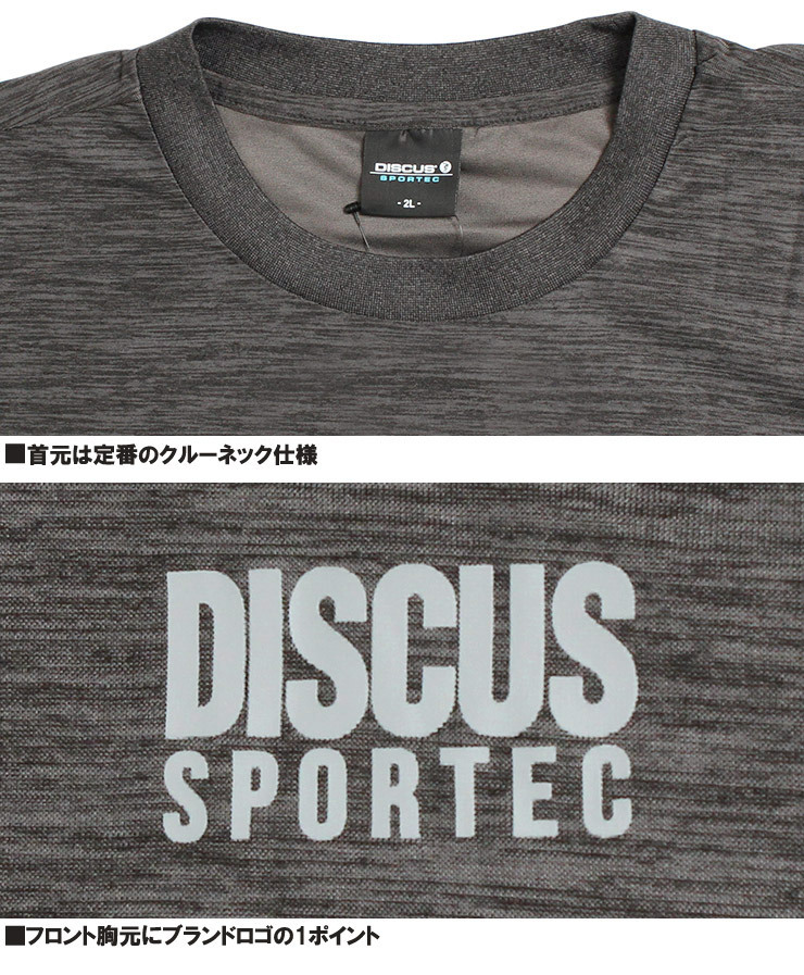 | 商品名 | 【新品】 3L 杢ブラック DISCUS ディスカス 半袖 Tシャツ メンズ 大きいサイズ カチオン ドライ 吸汗速乾 抗菌 防臭 ロゴ プリント クルーネック カットソー |