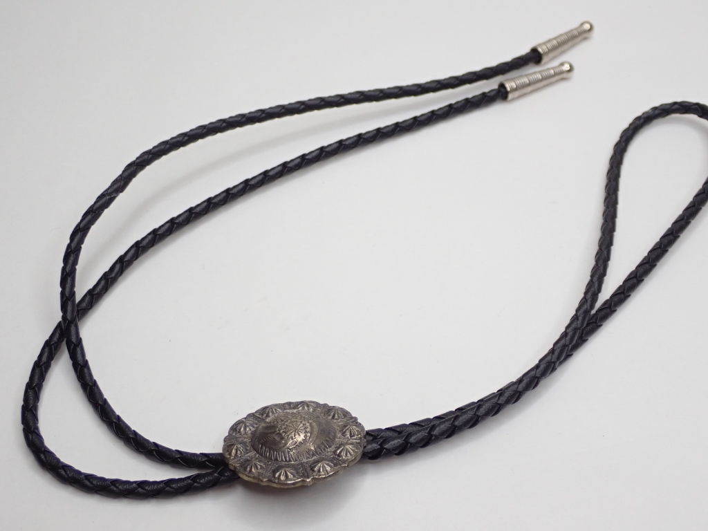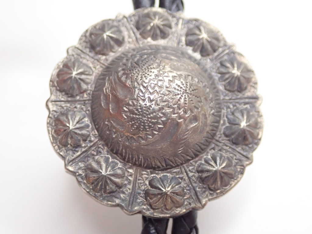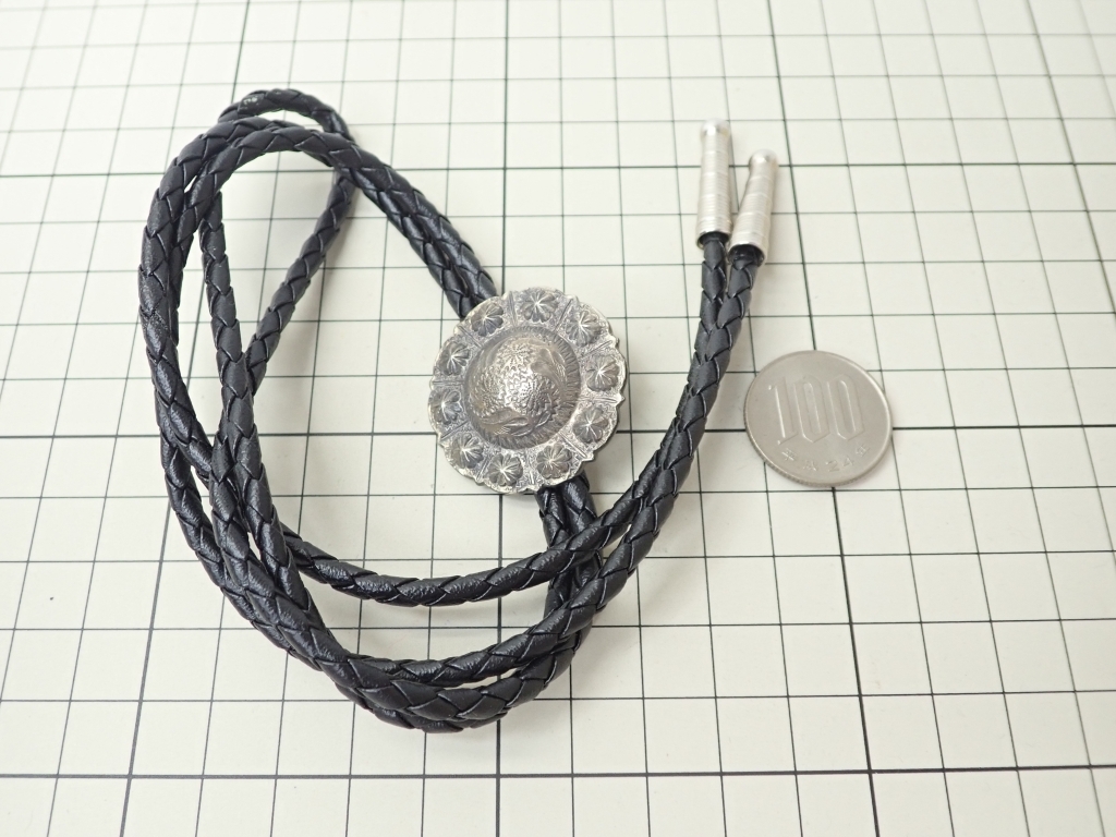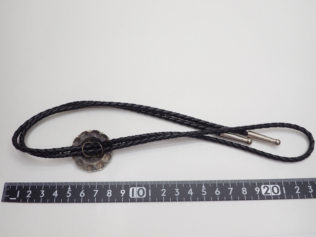 Q320 ループタイ 金属製 彫刻 花デザイン 45cm ヴィンテージ アクセサリー loop Poler tie
