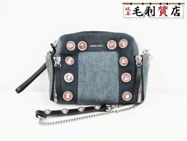 ディーゼル DIESEL RN93243 デニム スタッズ シルバーチェーン ショルダー ユニセックス【中古】バッグ |