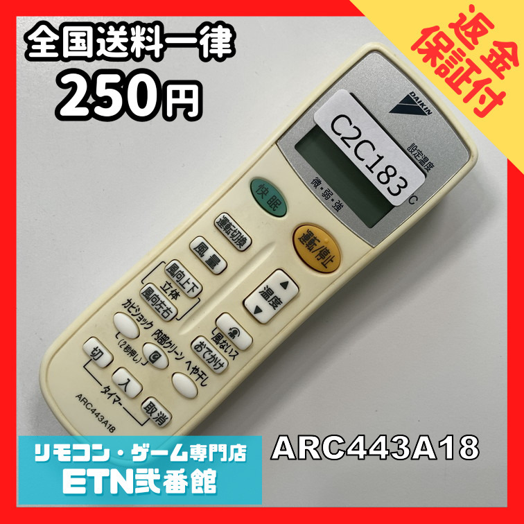 C2C183 【送料250円】エアコン リモコン / Daikin ダイキン ARC443A18 冷房 暖房 動作確認済み★即発送★