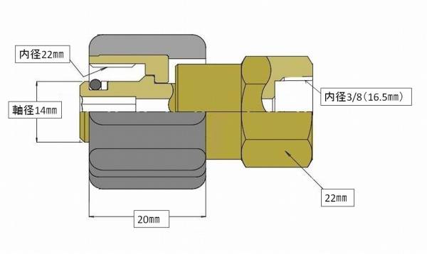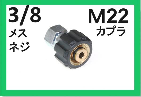 | 高圧洗浄機用 M22メス(3/8めすネジ) 仕様 ・材質 : 真鍮 ・カプラー部分のネジサイズ : 22ミリ ・パッキン部分の軸径サイズ : 14ミリ ・タイプ : メス ・取り付けネジサイズ : 3/8メス(平行ネジ 約16.5ミリ) ・耐圧 : 210k(20.5Mpa) ・Bタイプ (A B共に互換性は、有ります) 互換性 ・電気式マキタ ・ケルヒャー ねじ込みタイプ (HDシリーズは不可) ・旧型蔵王産業(スクリューコネクション) ・クランツレ ・その他 M22カプラー 軸径14㎜ 必ず写真と図面で、確認してください。 他のカプラーは、下の高圧関係検索から探せます |