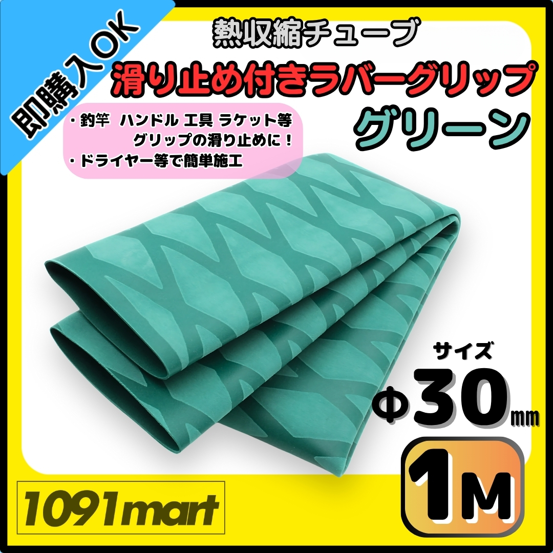 【送料無料】熱収縮チューブ ラバーグリップ Φ30㎜ 100㎝ グリーン 滑り止め加工 グリップの補強に 釣竿 工具 ラケット