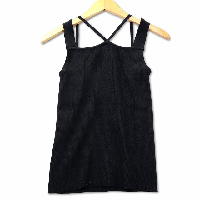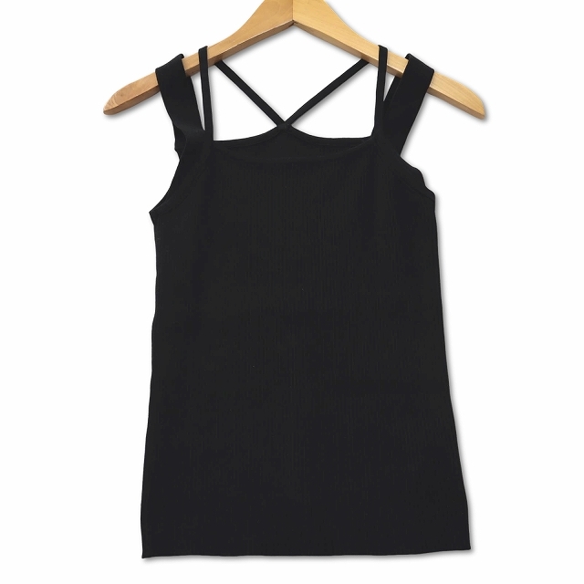 アースミュージック&エコロジー EARTH MUSIC & ECOLOGY リブニット キャミ カットソー S ブラック レディース