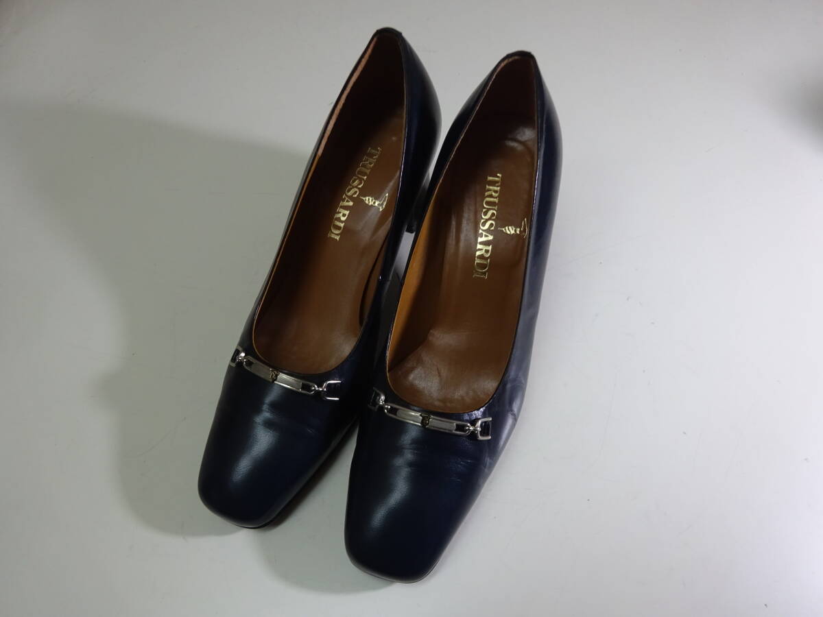 TRUSSARDI トラサルディ レディース パンプス 美品 商品説明 ●23cmサイズ ●ヒールの高さ約6.5cm ●ワイズ幅約7.3cm ●お色 ネイビー系革 ●状態 使用回数の少ない美品 ●お手入れ抗菌剤品 ●箱無し コメントが御座いますとお気軽にお問い合わせ下さいね、 宜しくお願い致します。