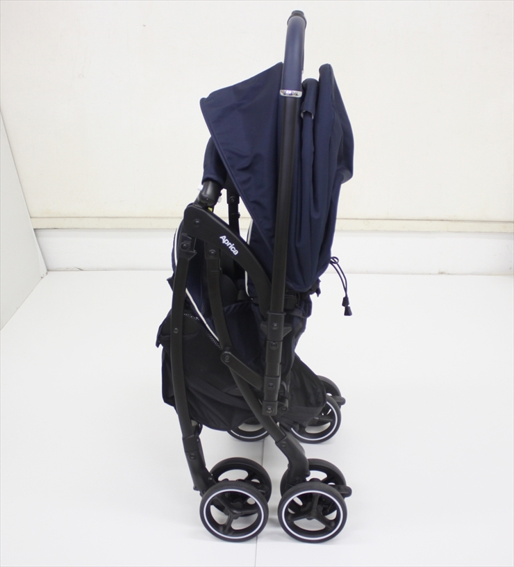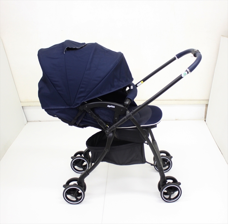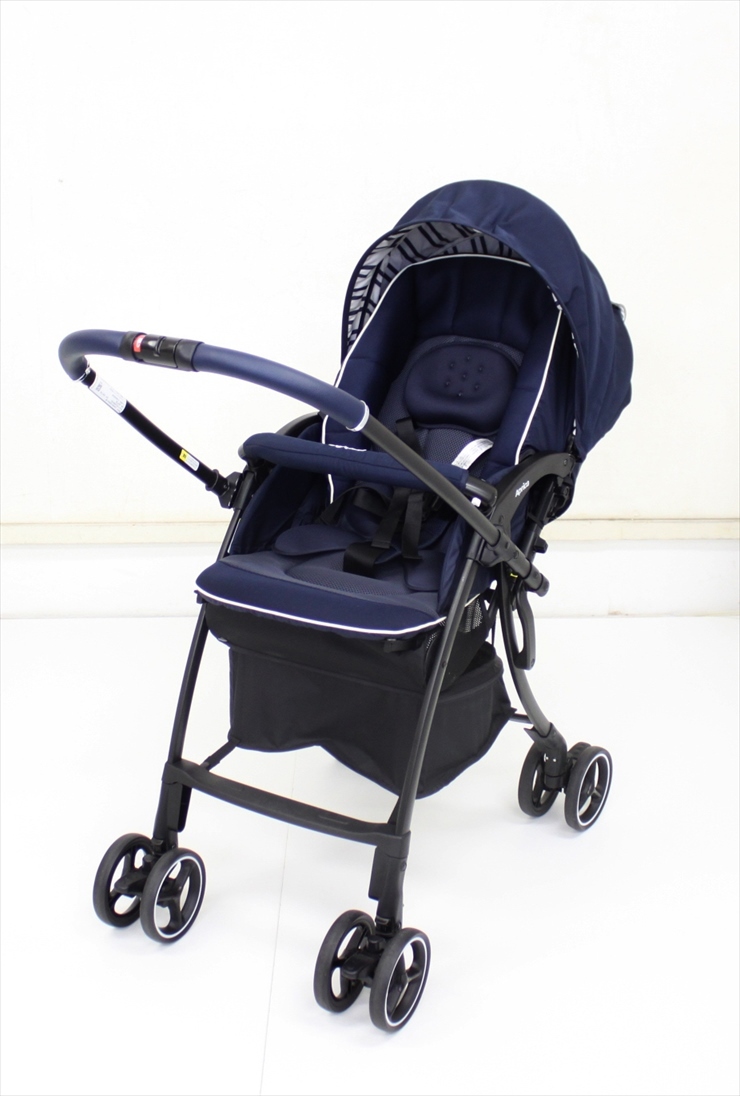 送料無料 美品 ラクーナクッション AB ネイビーマリーナ アップリカ製ベビーカー 軽量オート4輪 生後1ヶ月~ クリーニング済み