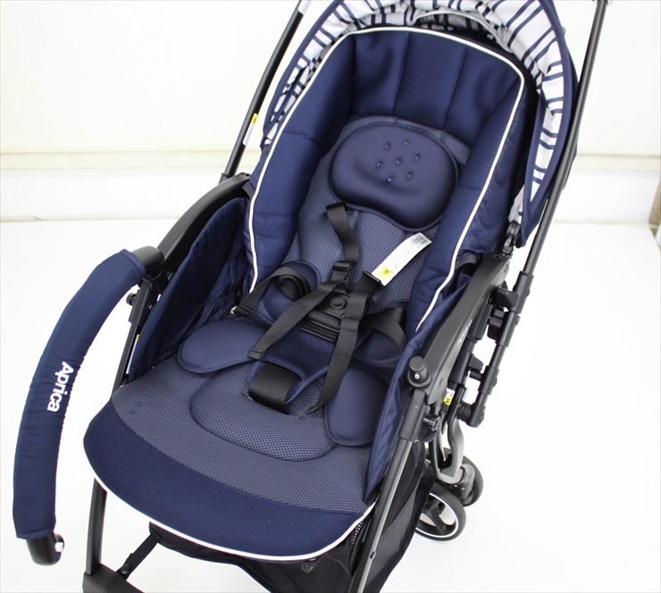 送料無料 美品 ラクーナクッション AB ネイビーマリーナ 2097728 アップリカ製ベビーカー 軽量オート4輪 生後1ヶ月~ クリーニング済み A664503
