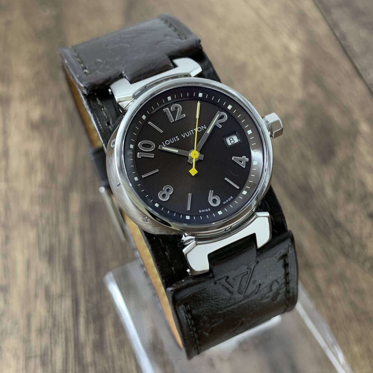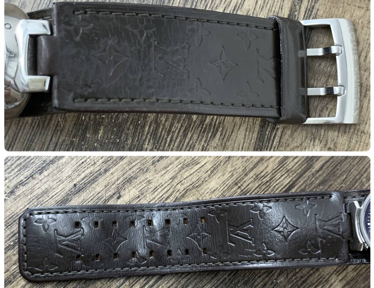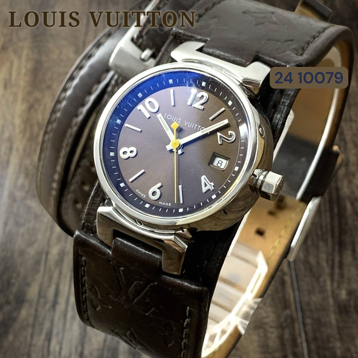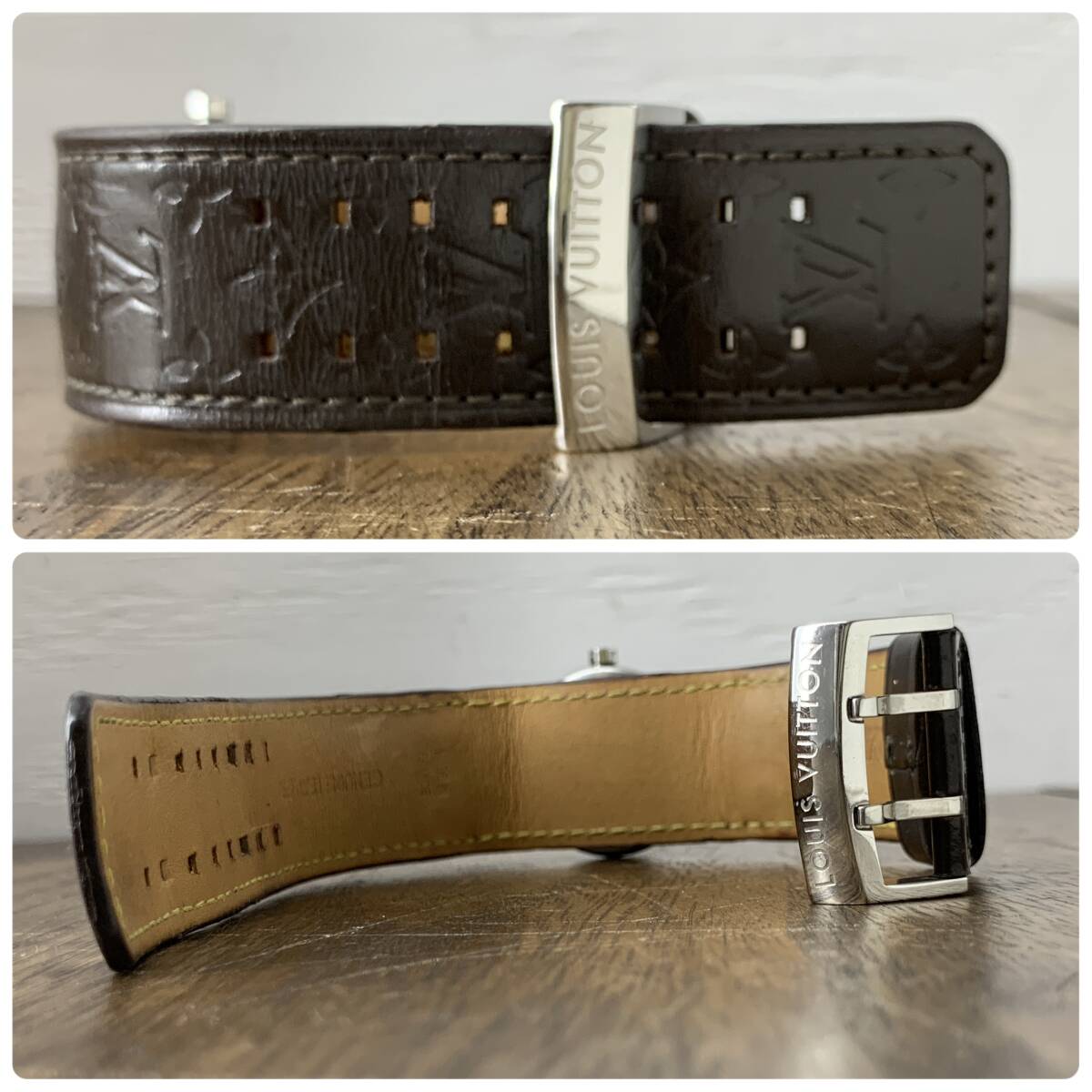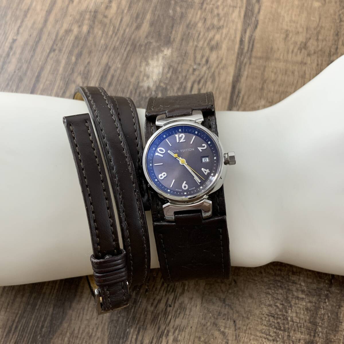 替ベルト付!ルイヴィトン/LOUIS VUITTON タンブール Q1211 デイト レディース腕時計 レザー ダークブラウン シルバー