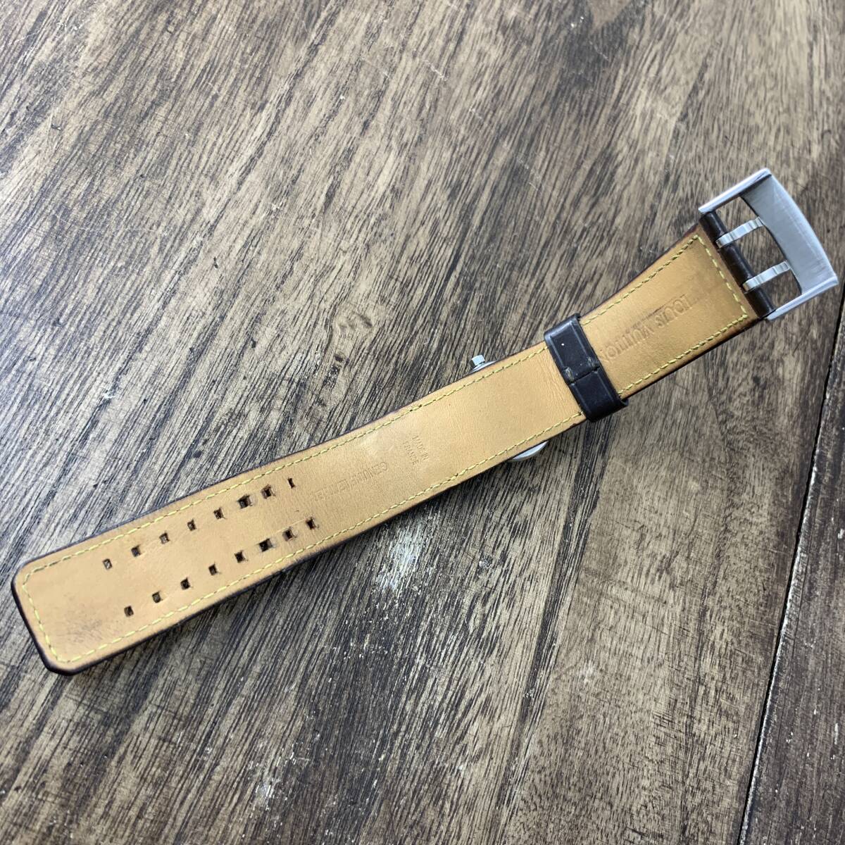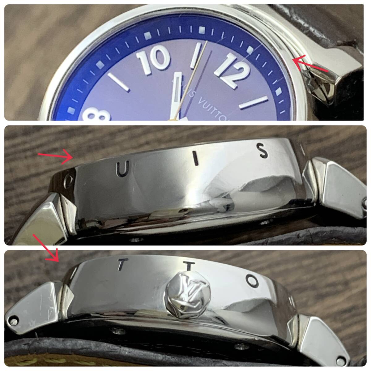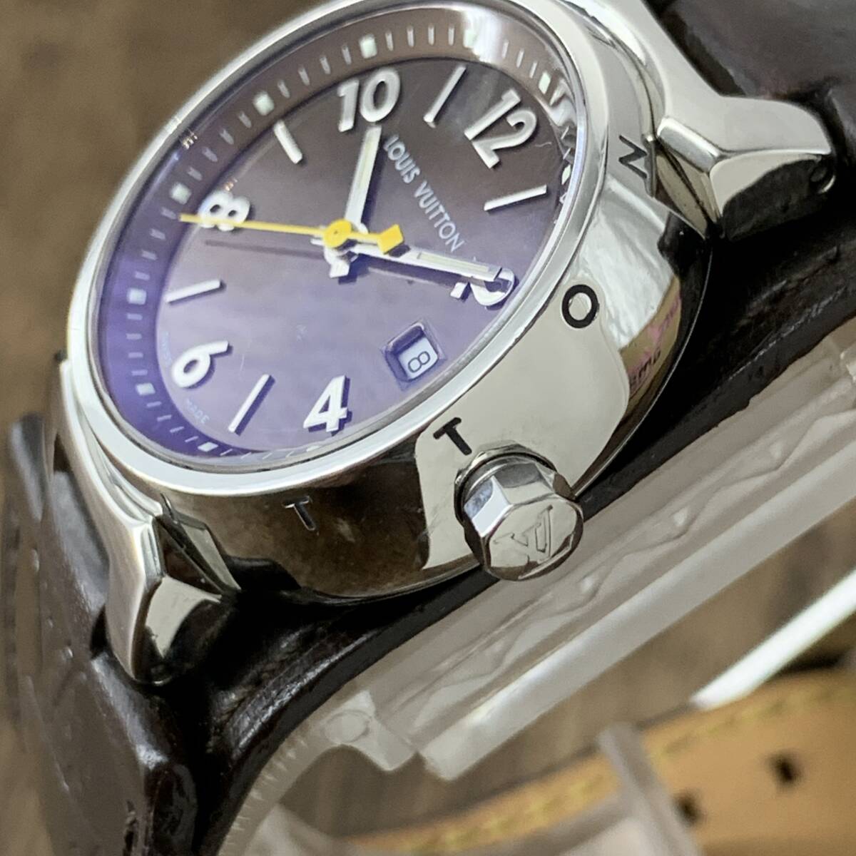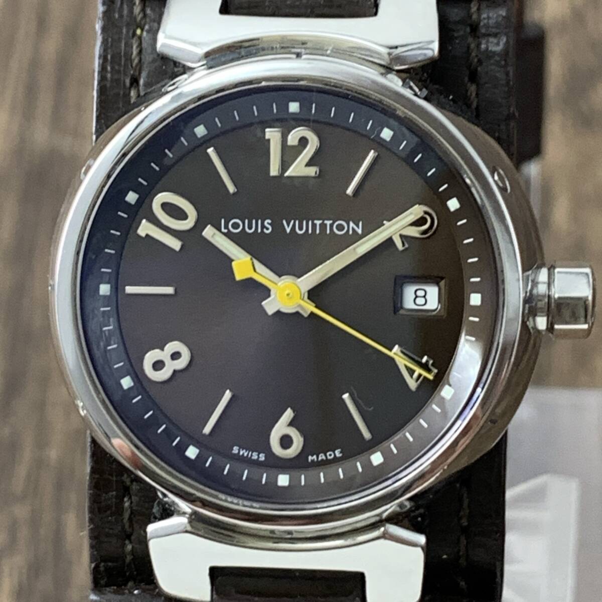 替ベルト付!ルイヴィトン/LOUIS VUITTON タンブール Q1211 デイト レディース腕時計 レザー ダークブラウン シルバー